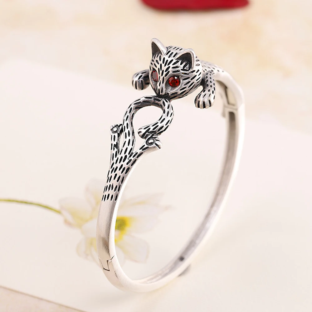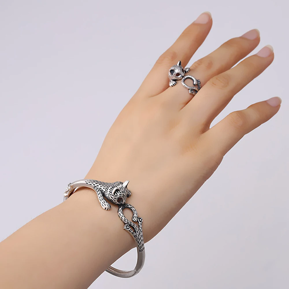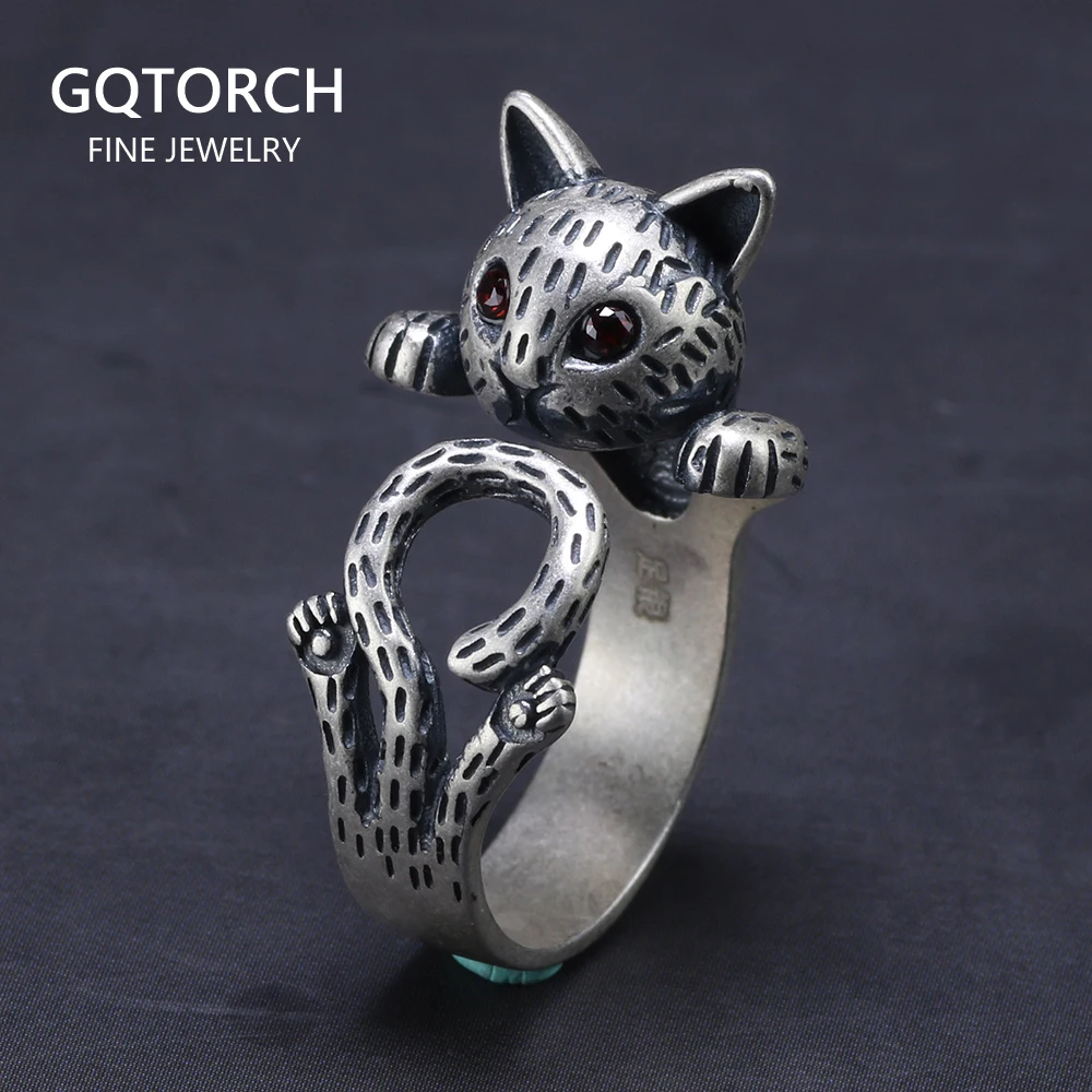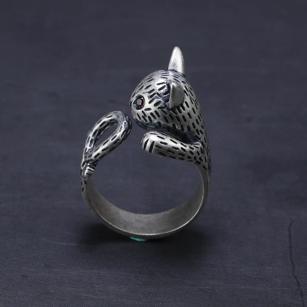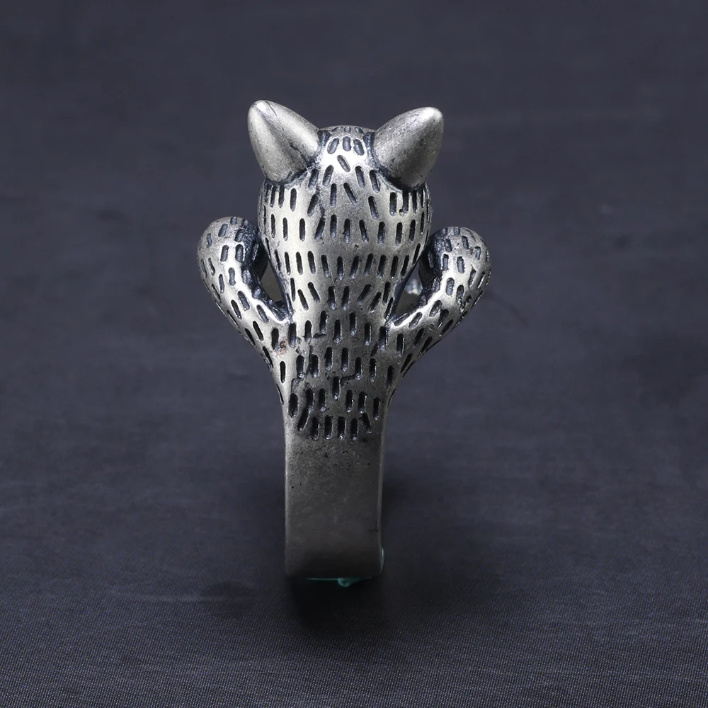 Женское кольцо из серебра 999 пробы, регулируемое Винтажное кольцо с милыми кошками