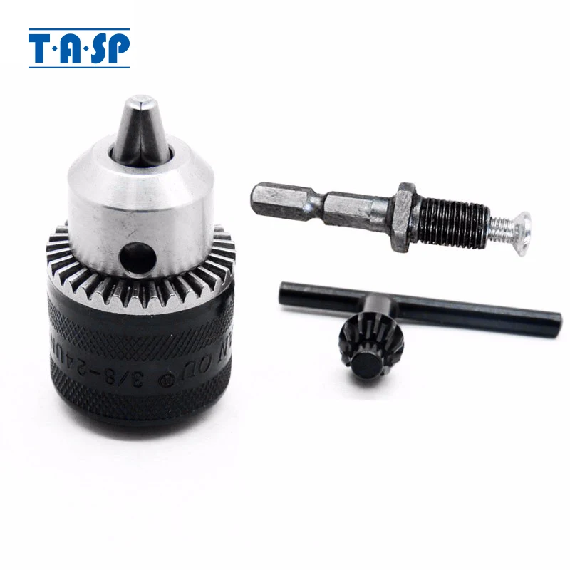 Патрон для дрели TASP с ключом и адаптером, 10 мм, 38 дюйма, 24UNF
