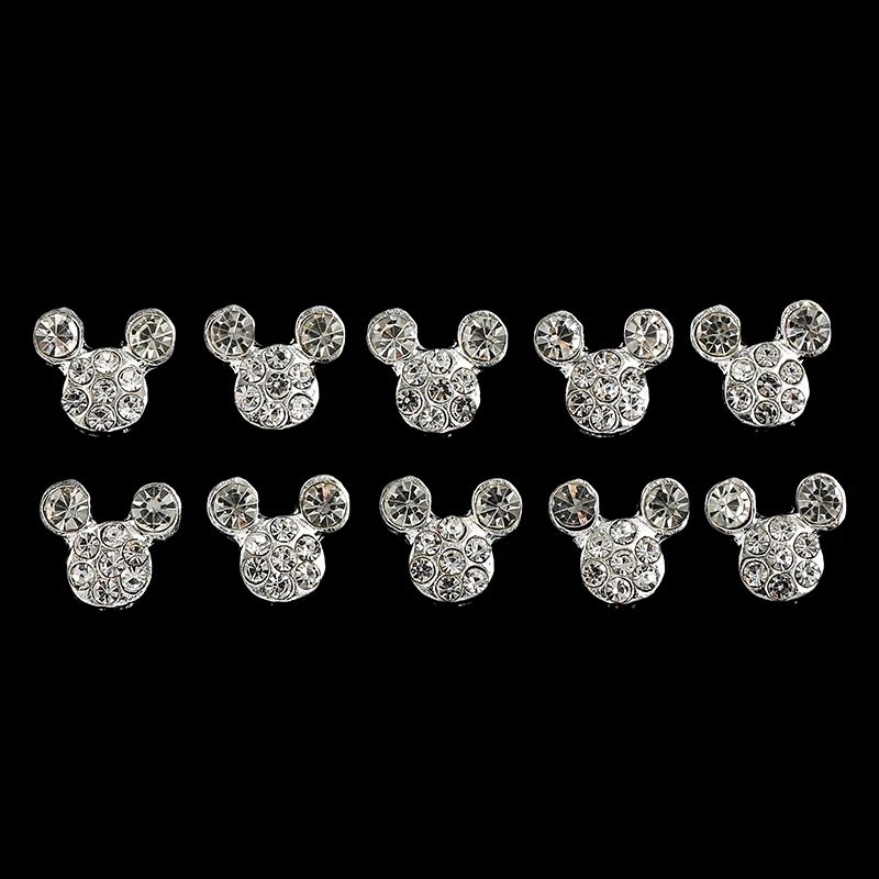 Украшения для ногтей, блестящие, в виде мыши, из сплава, 3d, 10 шт.
