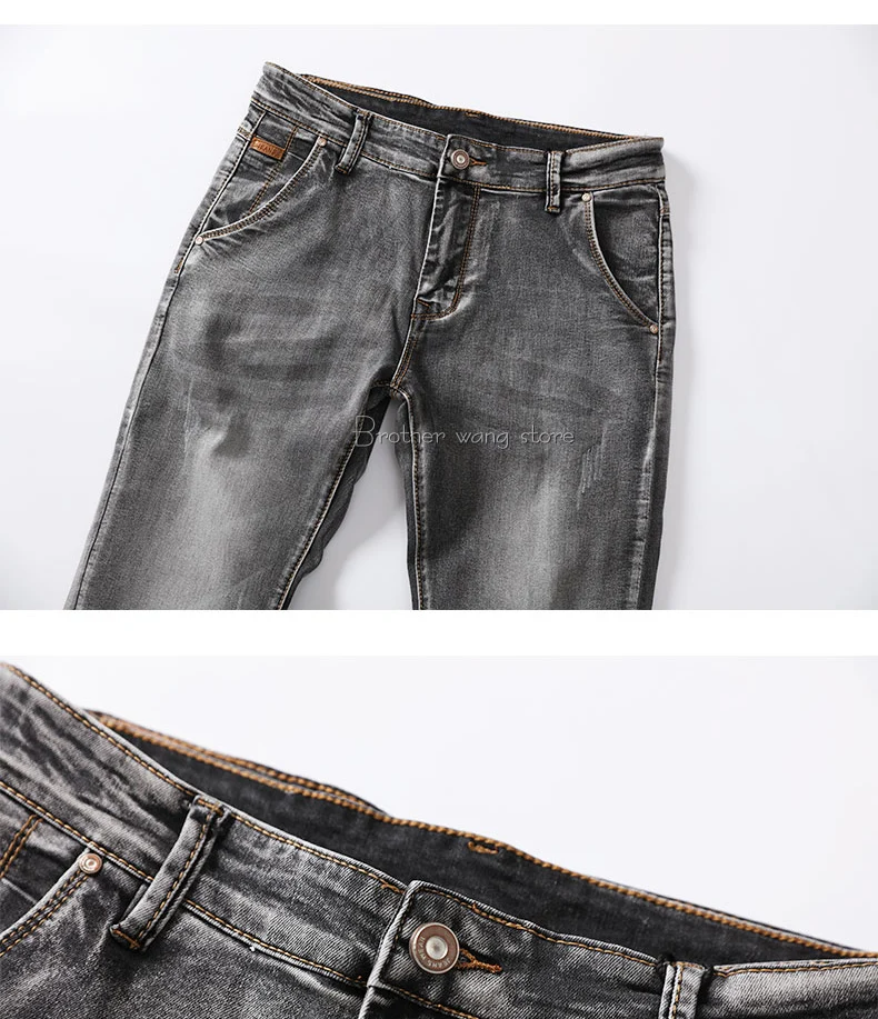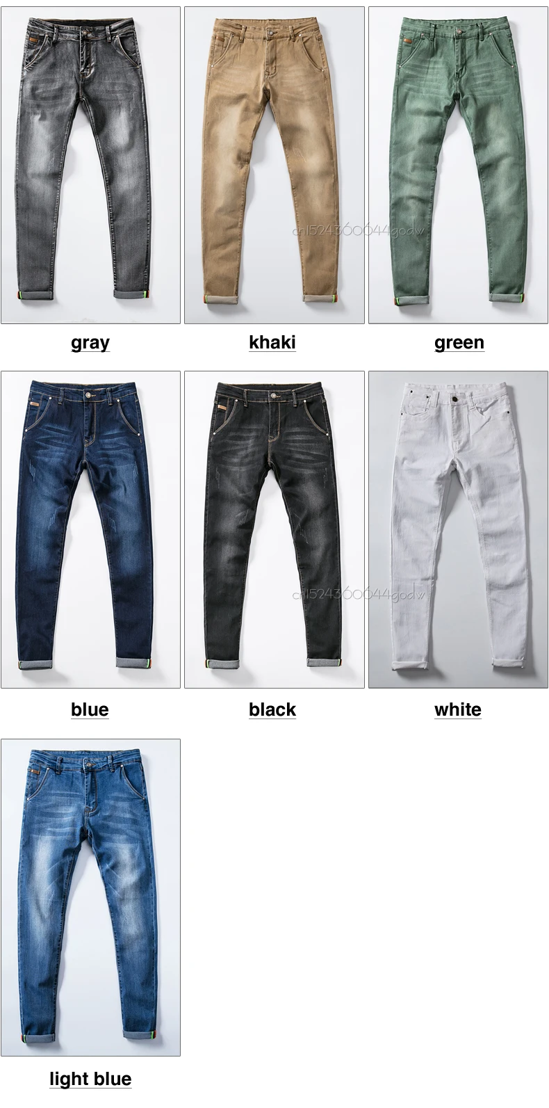 7 цветов, мужские Стрейчевые обтягивающие джинсы, модные повседневные облегающие джинсовые брюки, мужские брендовые серые, черные, хаки, белые брюки