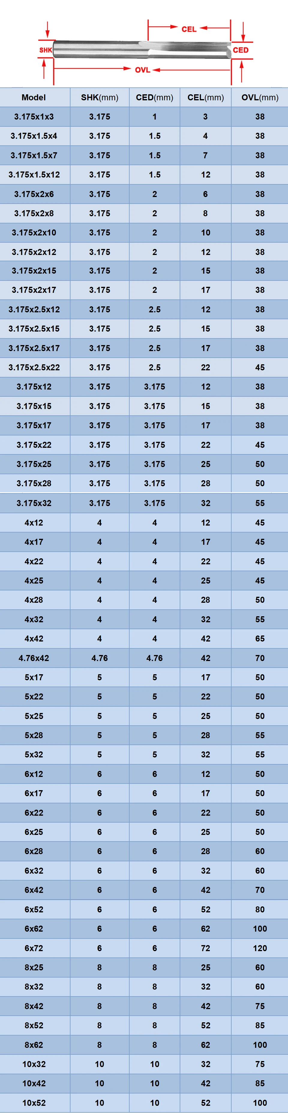 Диаметр режущей кромки: 3,175-10 мм