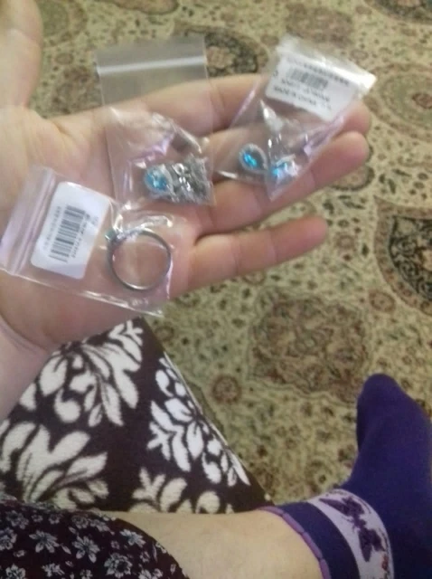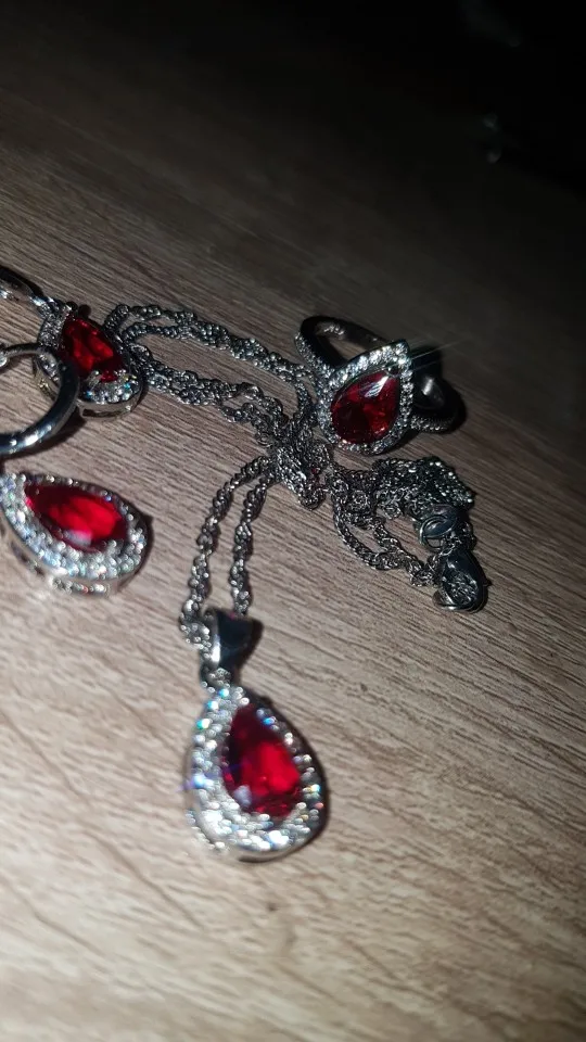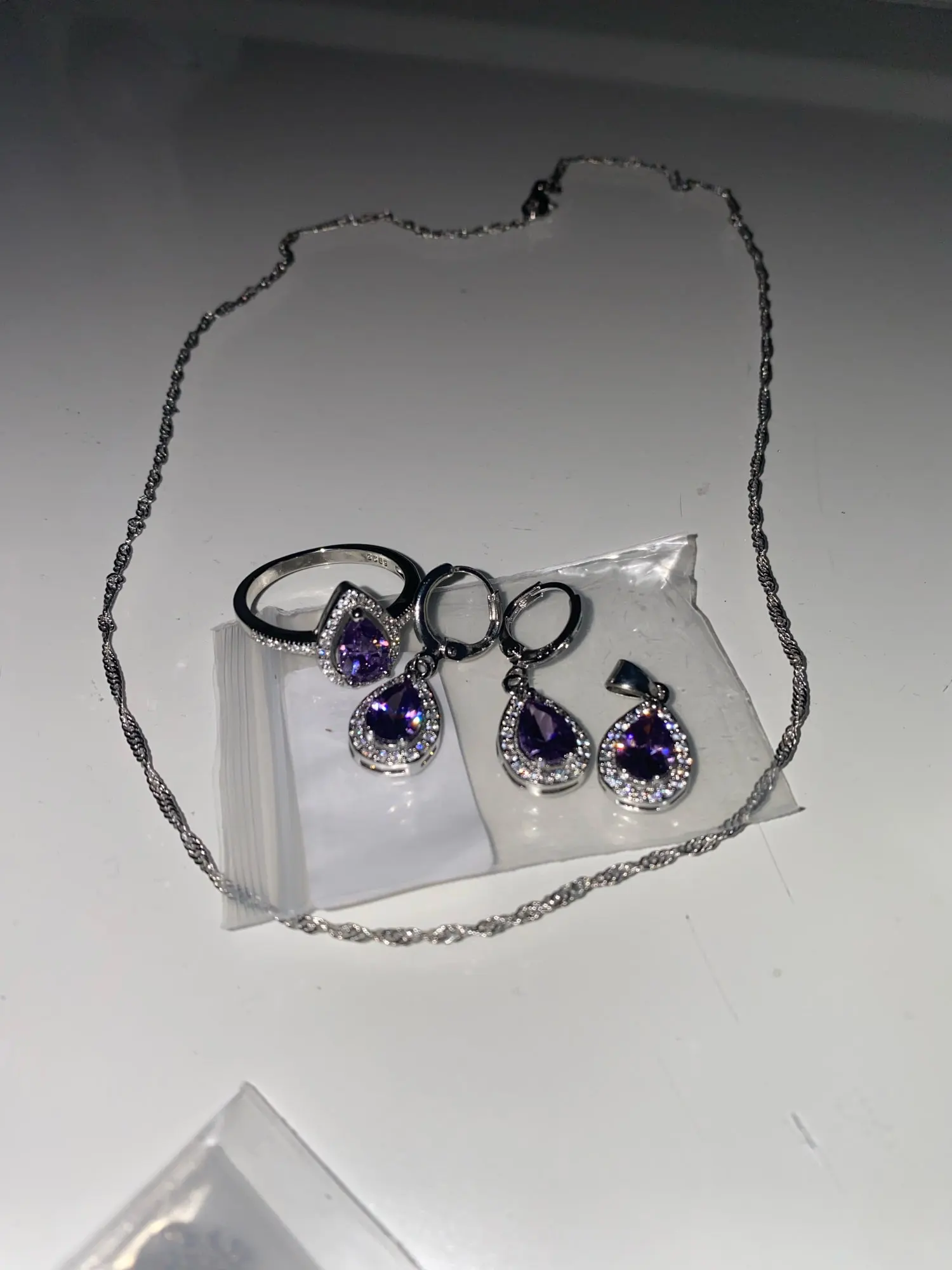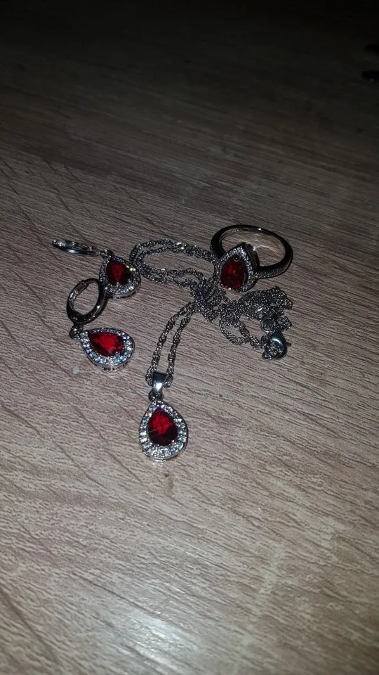 Полный комплект очень милый. Цепь была повреждена, а не zglaszalam продавцом, потому что я не заботился как-то о медальоне. Кольцо немного большое, но ujdzie. Крутые серьги.