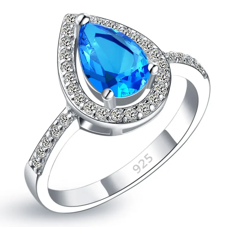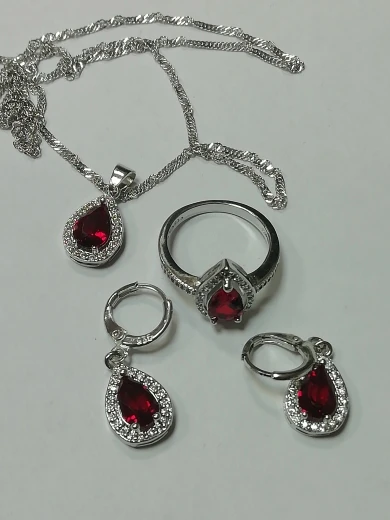 Набор украшений из серебра 925 пробы, с красными кристаллами, в виде капли воды, с кубическим цирконием, кольцо на палец, 6789