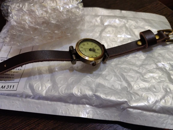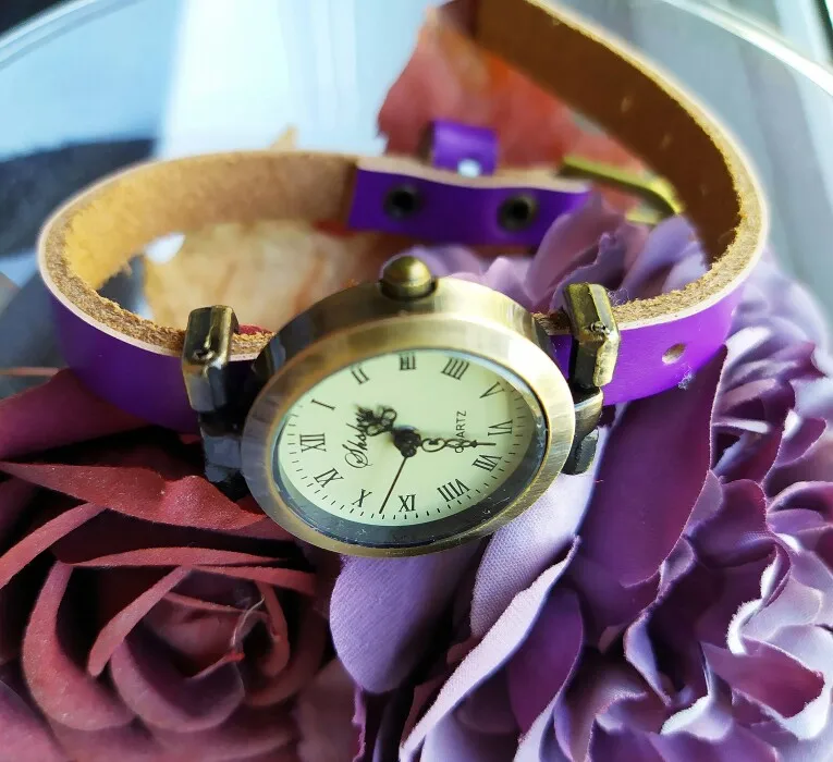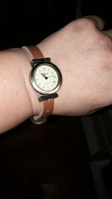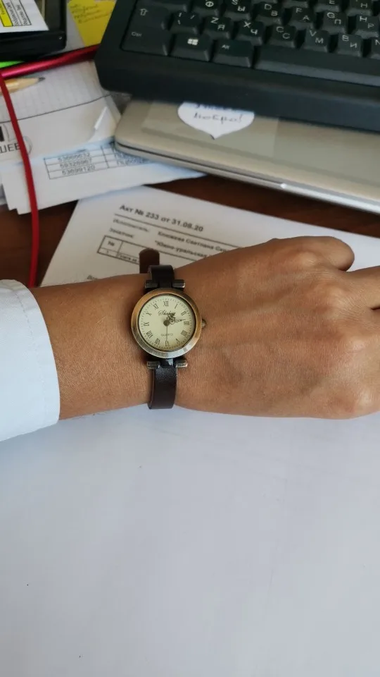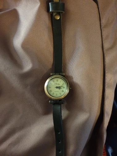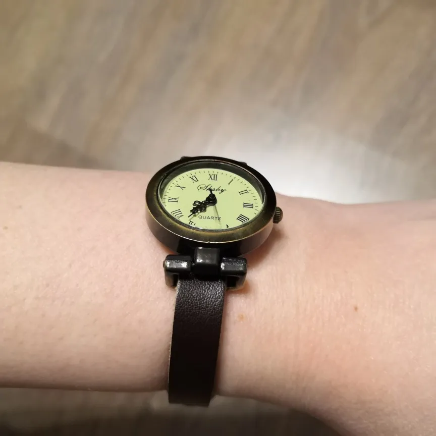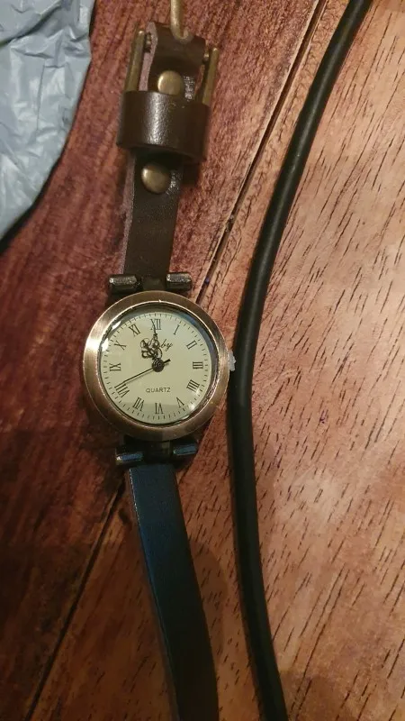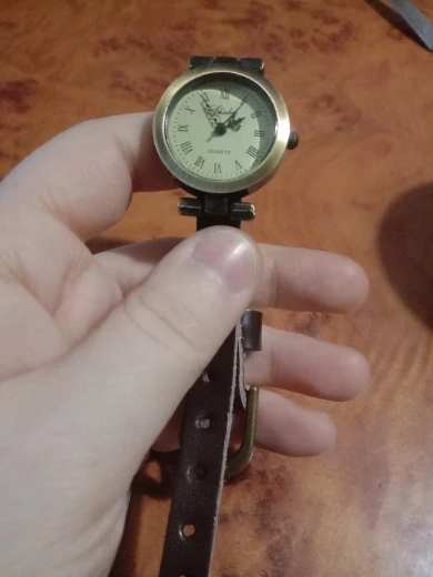 Кайфовые часики, качественные. Ремешок под кожу, но это не она, а что-то склеенное из двух слоёв. Надеюсь не сильно быстро затреплется. Сами часики по ремешку двигаются, можно снять. В целом очень понравились. Единственное, шли оочень долго, больше двух месяцев, уже думала не придут
