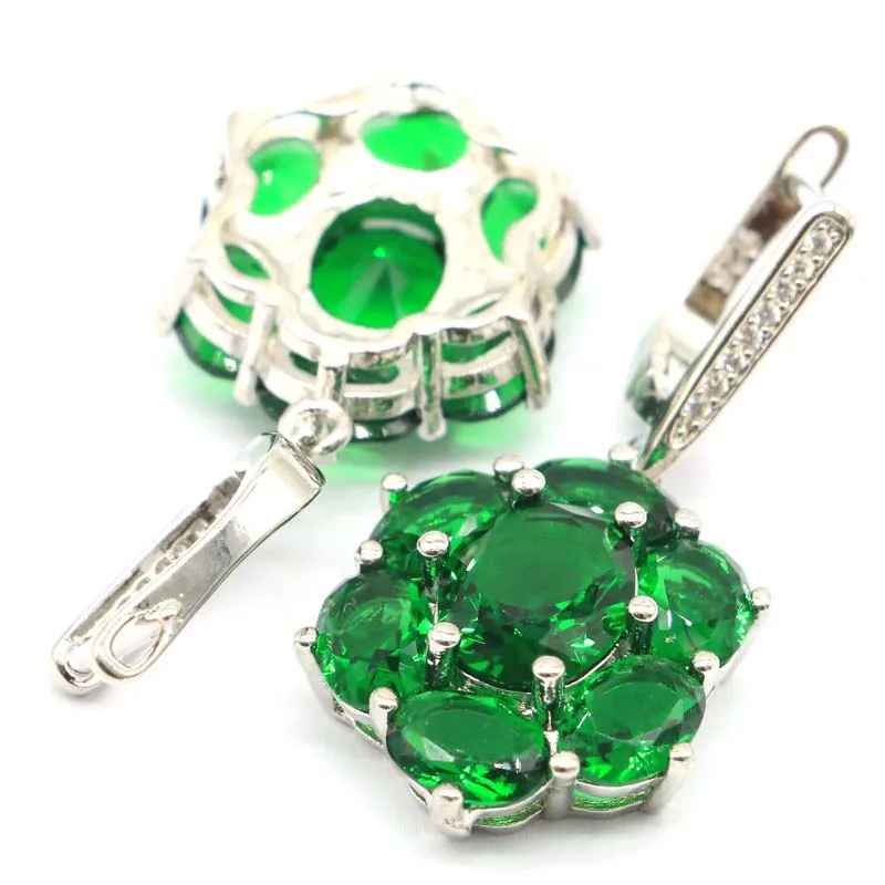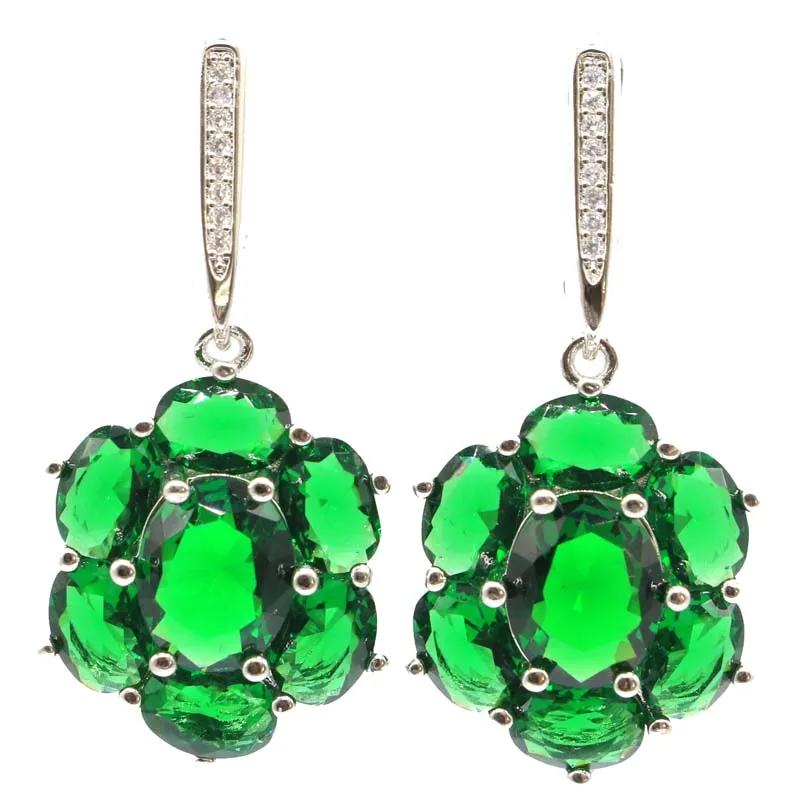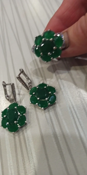 Комплект ювелирных изделий из серебра настоящий зеленый изумруд пробы, 27x17 мм