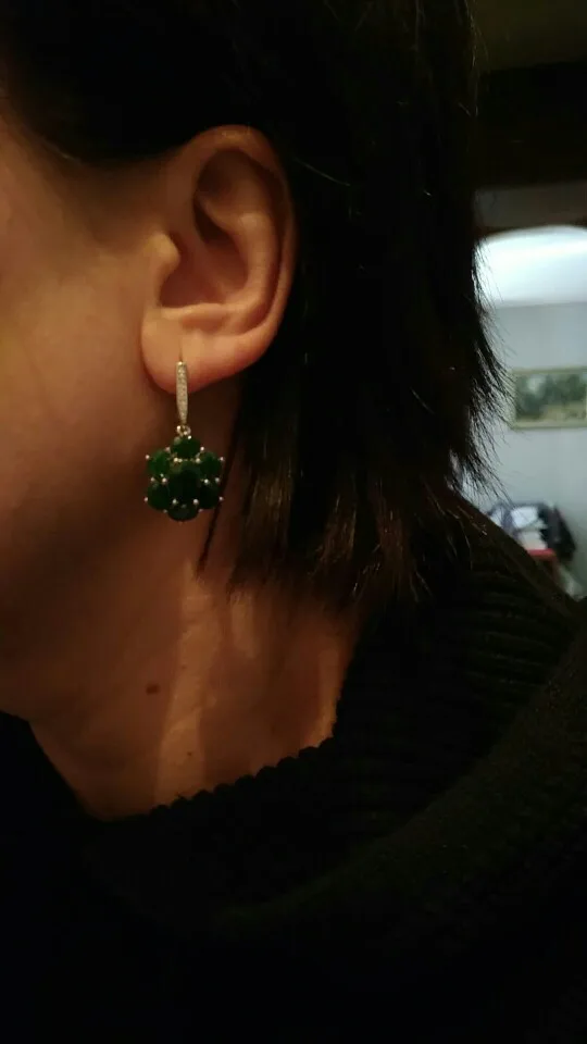 в серьгах много мелких деффектов. недопаяна петля, на которой держится подвеска, нужно нести к ювелиру иначе ее можно потерять. петля второй серьги согнута на 45°. издалека выглядят неплохо. недоделки портят впечатление.