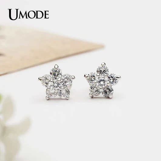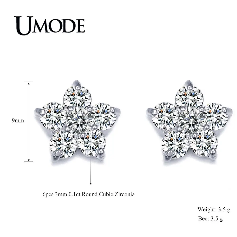 Женские серьги-гвоздики в форме цветка UMODE, свадебные серьги в форме цветка из фианита AAA, AUE0080