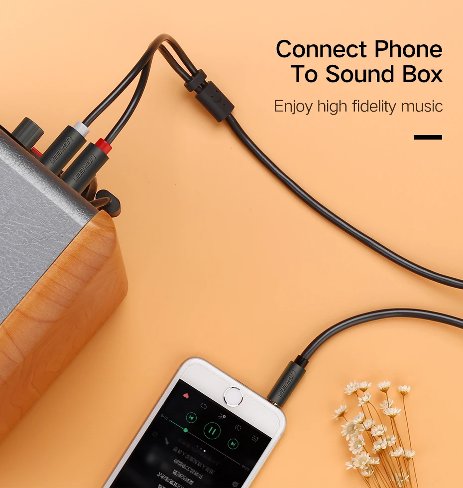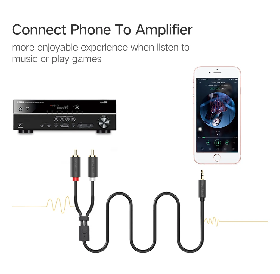 Ugreen RCA 3,5 мм разъем кабель 2 RCA штекер 3,5 мм Мужской Аудио кабель 1 м 2 м 3 м Aux кабель для домашнего кинотеатра DVD наушников ПК