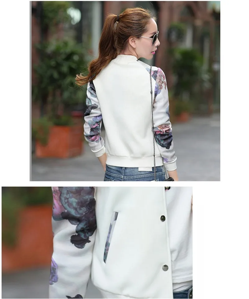 2022 Женская куртка, брендовые топы, Женская Повседневная бейсбольная Толстовка с цветочным принтом для девушек, тонкая куртка-бомбер на пуговицах с длинным рукавом, куртки