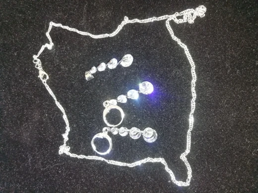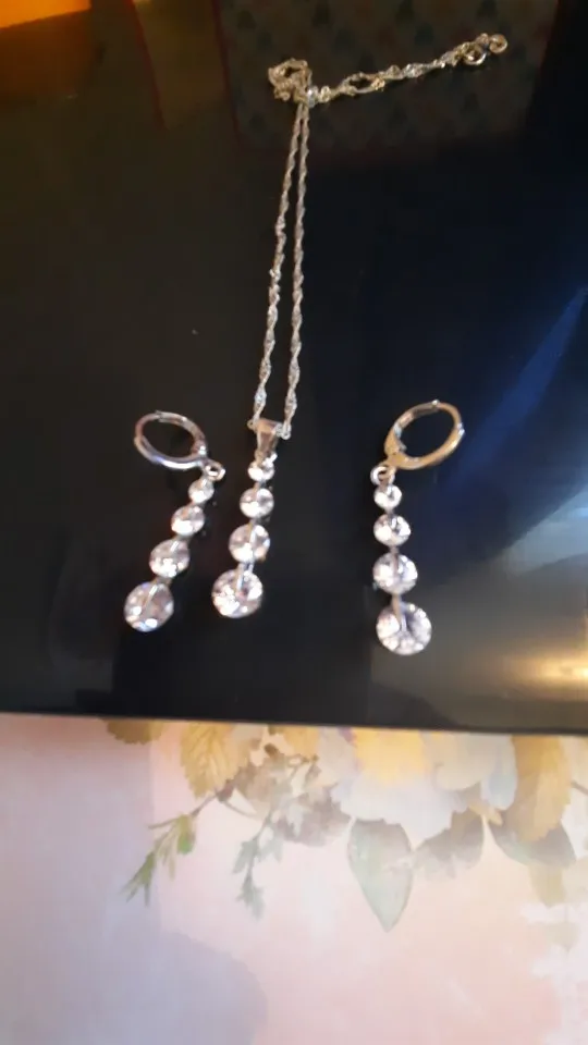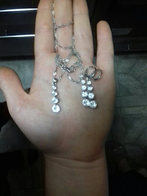 Подвески и серьги очень красивые, но цепочка определенно не Серебристая. Он почернен и не может быть очищен даже с помощью специального серебристого продукта. Так удовлетворение в 3