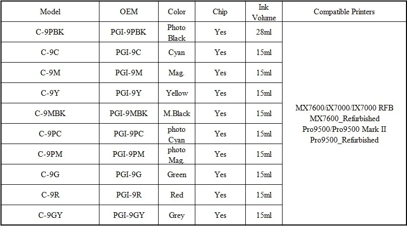 PGI-9 PGI9 для Canon PGI-9 с чипом Совместимый картридж для Canon MX7600/iX7000/IX7000 RFB MX7600/Pro9500