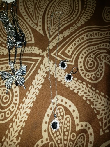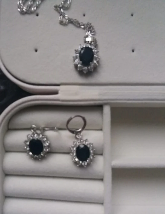 Ожерелье и серьги, из серебра 925 пробы, с черными овальными фианитами