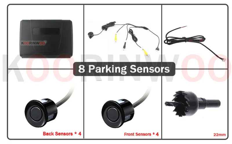 Парковочные датчики Koorinwoo, 8 радаров, Видео система автопарковки, Биби сигнализация, звуковая сигнализация, парковочная система, парктроник