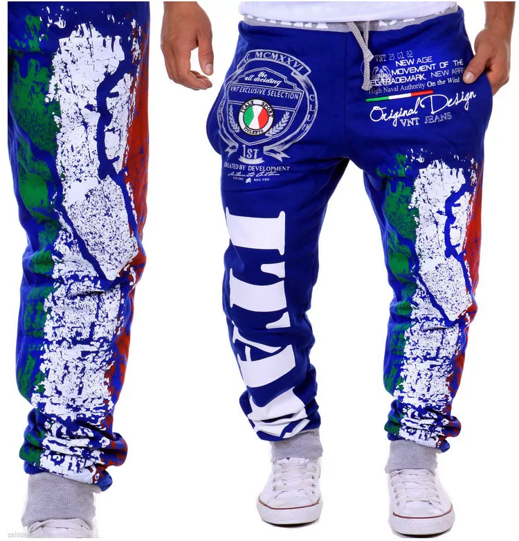 2017 модные хлопковые мужские повседневные брюки Взрывные модели спортивные брюки дизайнерские повседневные брюки с принтом итальянского флага