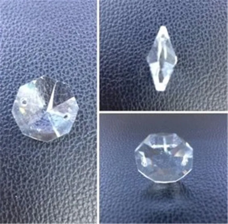 100 шт./лот, стеклянные Восьмиугольные бусины 14 мм с 2 отверстиями, хрустальные бусины для люстры, подвесные кристаллы, свадебные цепочки