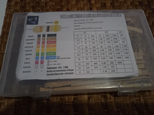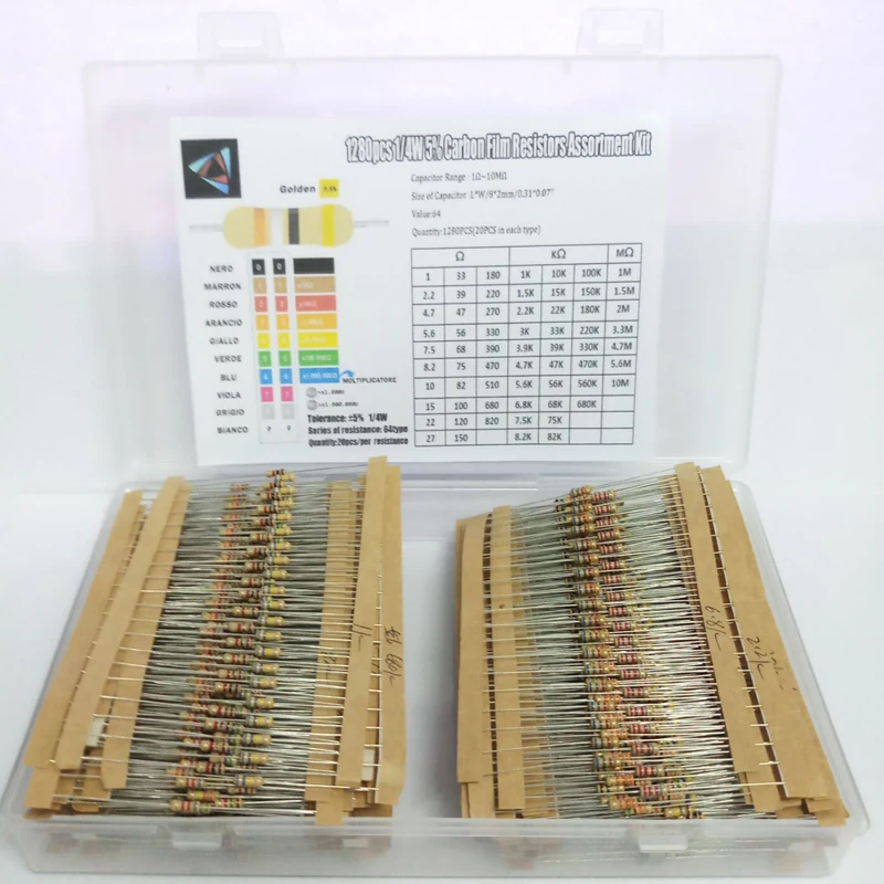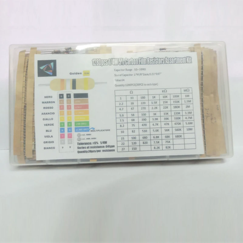 Комплект резисторов 14 Вт 1280, комплект резисторов 1 Ом-10 МОм 64 значения X 20 резисторов в карбоновой пленке, коробка для набор резисторов, 5% шт.