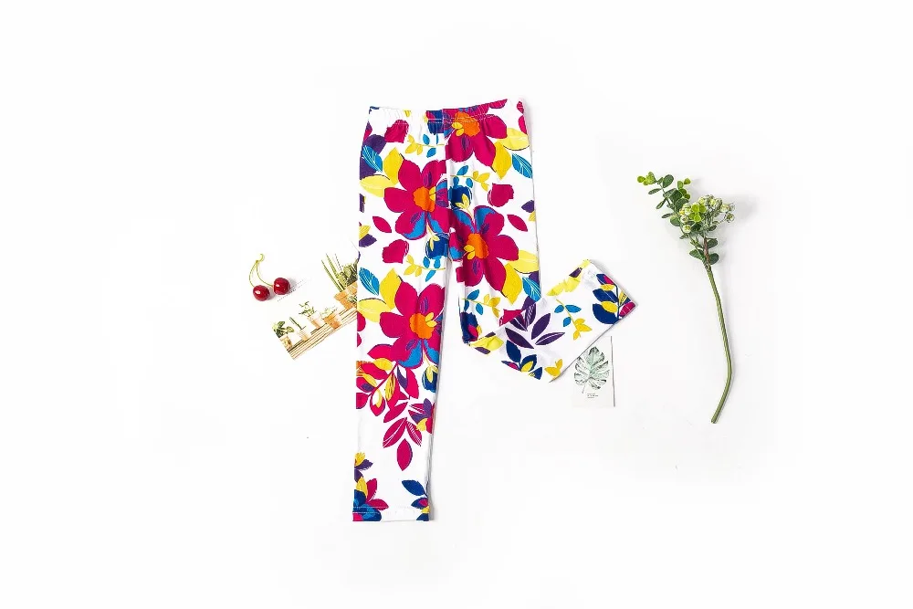 Леггинсы для девочек, демисезонные, с цветами и бабочками