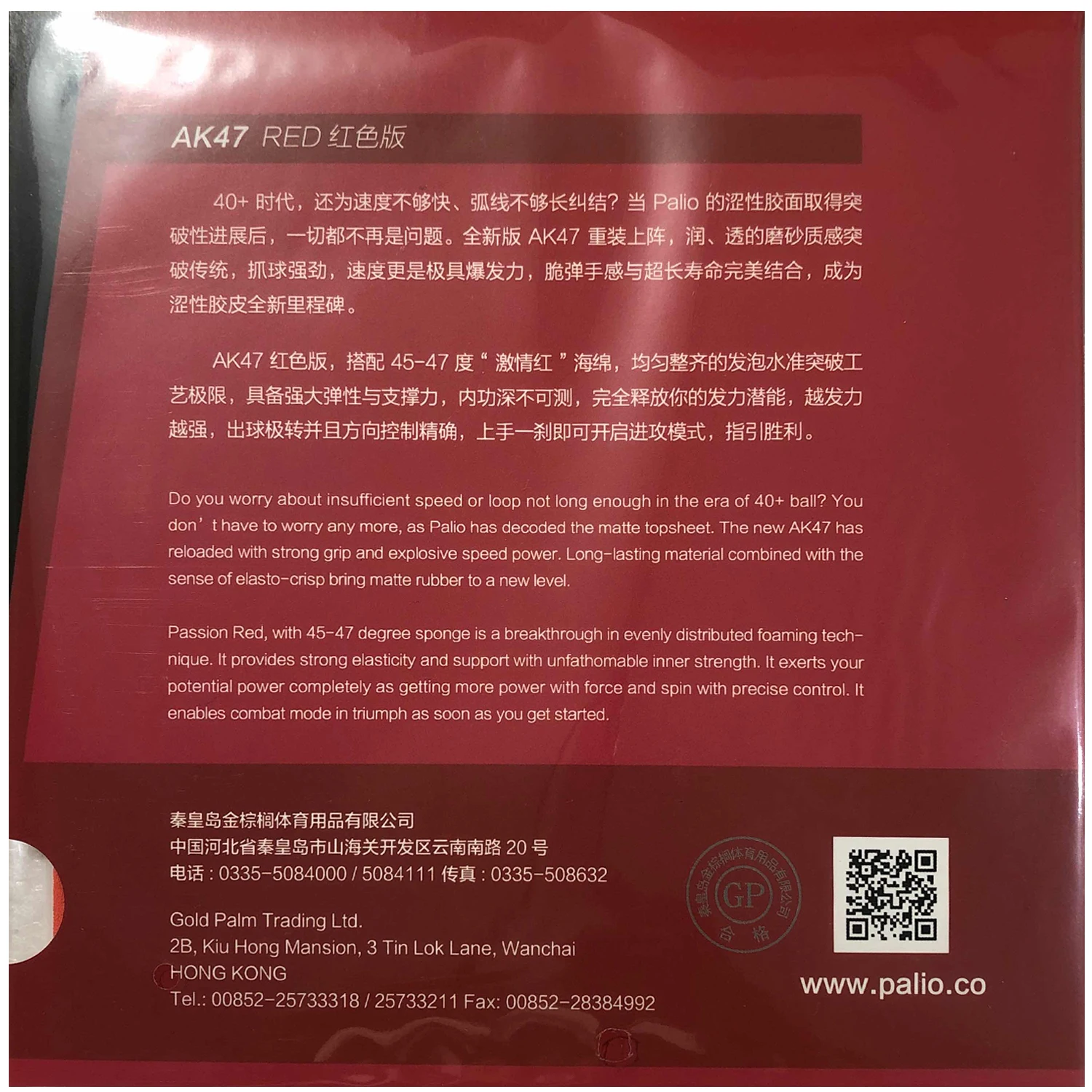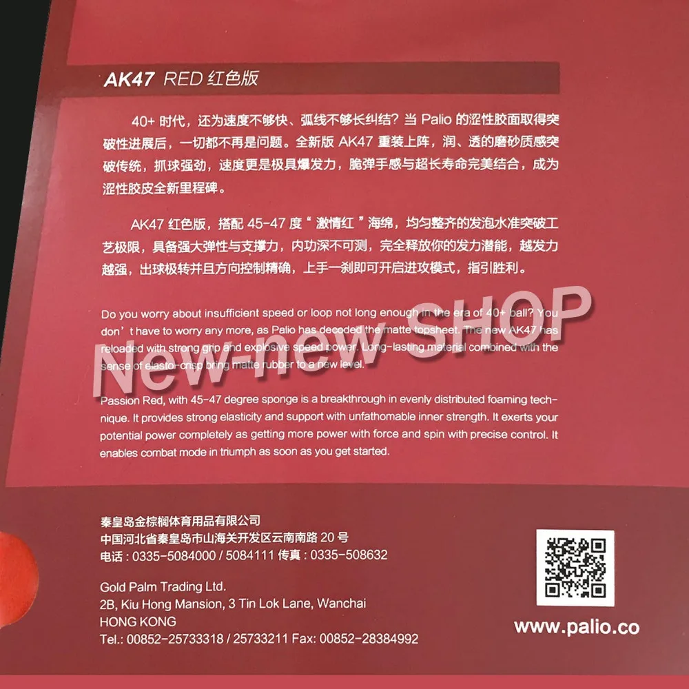 Palio AK47 AK-47 AK 47 RED Matt Pips-in PingPong Rubber с губкой 2,2 мм H45-47