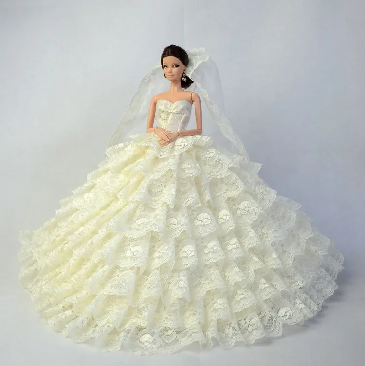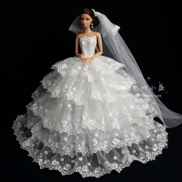 Новинка, свадебная одежда для куклы Барби, роскошное свадебное платье принцессы со шлейфом для невесты, детские игрушки, платье ручной работы на день рождения