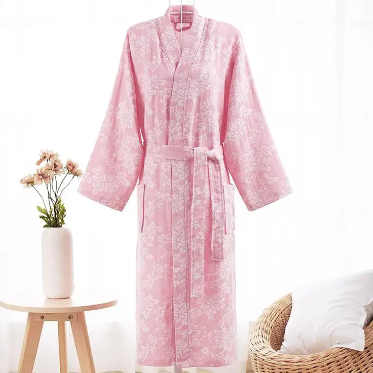 Женское Двухслойное хлопковое газовое кимоно домашний халат быстросохнущее ночное белье Банный халат интимное белье повседневное ночное белье