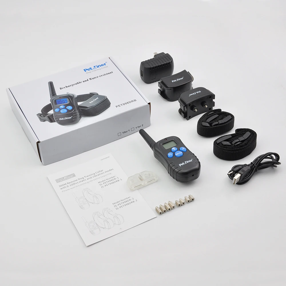 PET998DRB2-это идеальная система ошейников для тренировки собак для нового человека, который учится послушанию собаки, с электронным ошейником. Эта система построена с учетом начинающих, помогая им укрепить обычное послушание собаки по дому, двору или ходьбе в парке и с диапазоном 330 ярдов, обучение в этих условиях не должно быть проблемой. Он перезаряжается, прост в использовании и обеспечивает все необходимые функции, для кого-то, у кого нет опыта, чтобы обучить свою собаку как профессионала по низкой цене. Эти функции: статический шок, вибрация, тон и светильник. Когда тренировка две собаки одинаковая, мы гарантируем, что вы найдете стимуляцию, которая работает для обеих собак, так как мы предлагаем 100 уровней вибрации и статического шока.