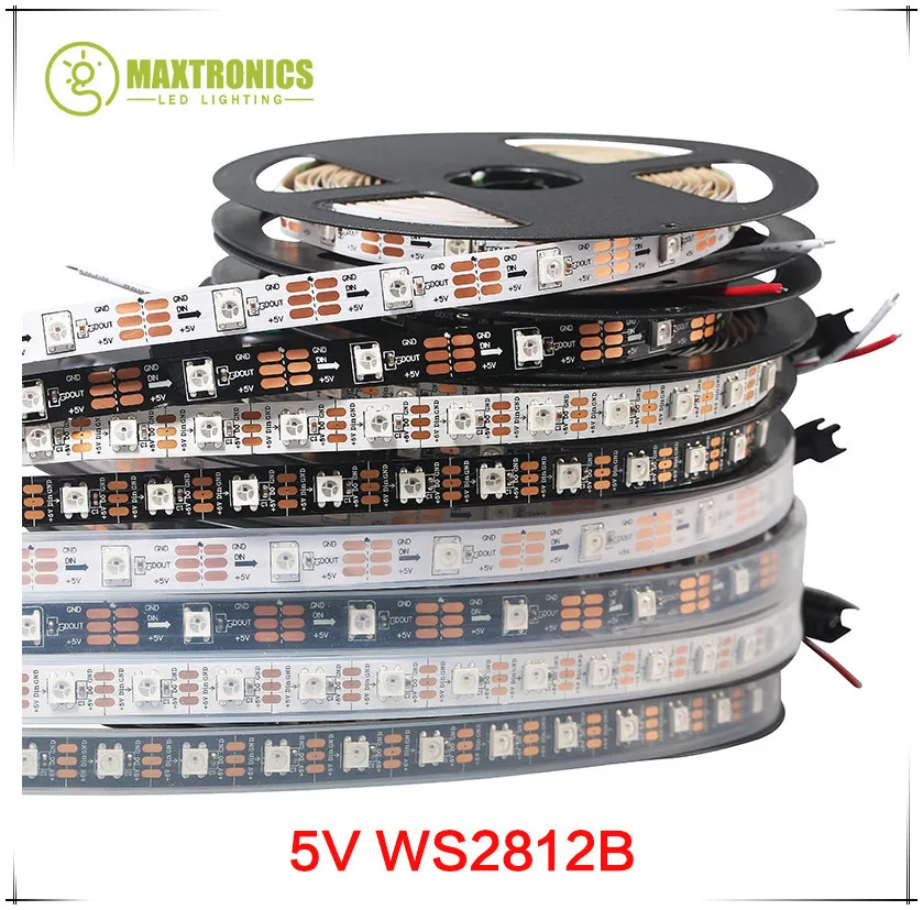 Умная светодиодная Пиксельная лента WS2812B 1 м5 м, чернаябелая печатная плата, 3060144 светодиодовm WS2812 IC;WS2812Bm 3060144 пикселей, IP30IP65IP67 DC5V