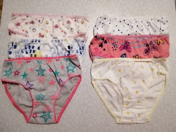 Товар отслеживался на всем пути следования. Трусики сшиты из тонкого хлопка, трое из них сшиты из яркого материала с ярким рисунком, а трое трусов - бледные, как будто вылинявшие, на бирках у всех размер один указан, но одни оказались по размеру чуть больше. Размер "11" подошел идеально худому ребенку 9 лет. Пока не стирала. Не знаю, рекомендовать ли вам их к покупке,т.к. сама не уверена, что стану снова их покупать.