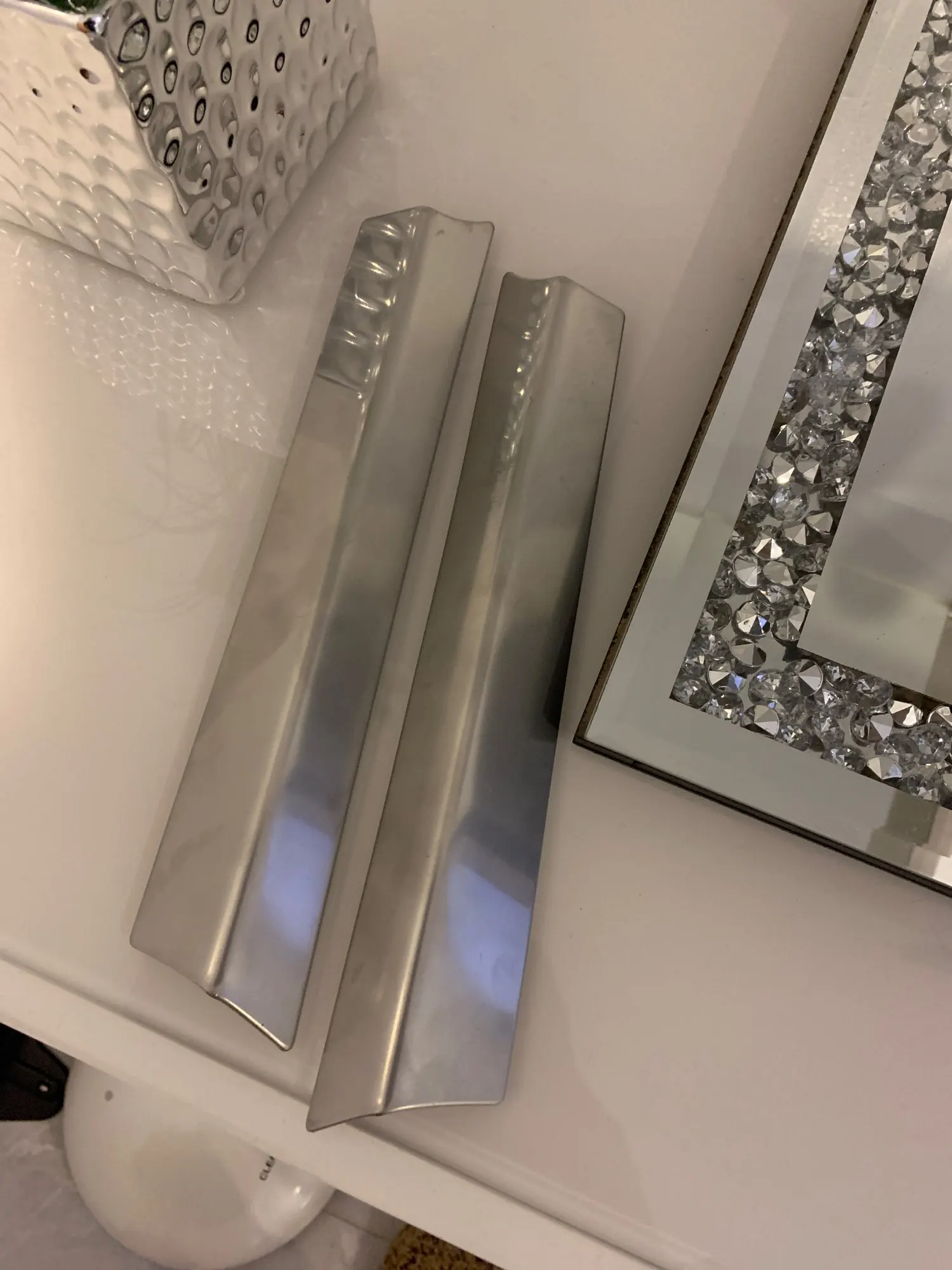 Они металлические с клейкой лентой. По цене они хорошо подходят, в моем случае цвет алюминия такой же, как цвет автомобиля.