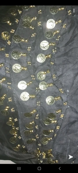 Очень блестящий. Выглядит потрясающе, когда качается вокруг бедер. Я использовал это для моего пиратского костюма на Хэллоуин. Я использовал это, чтобы обернуть вокруг своей черной юбки. Покрытие также отличное.