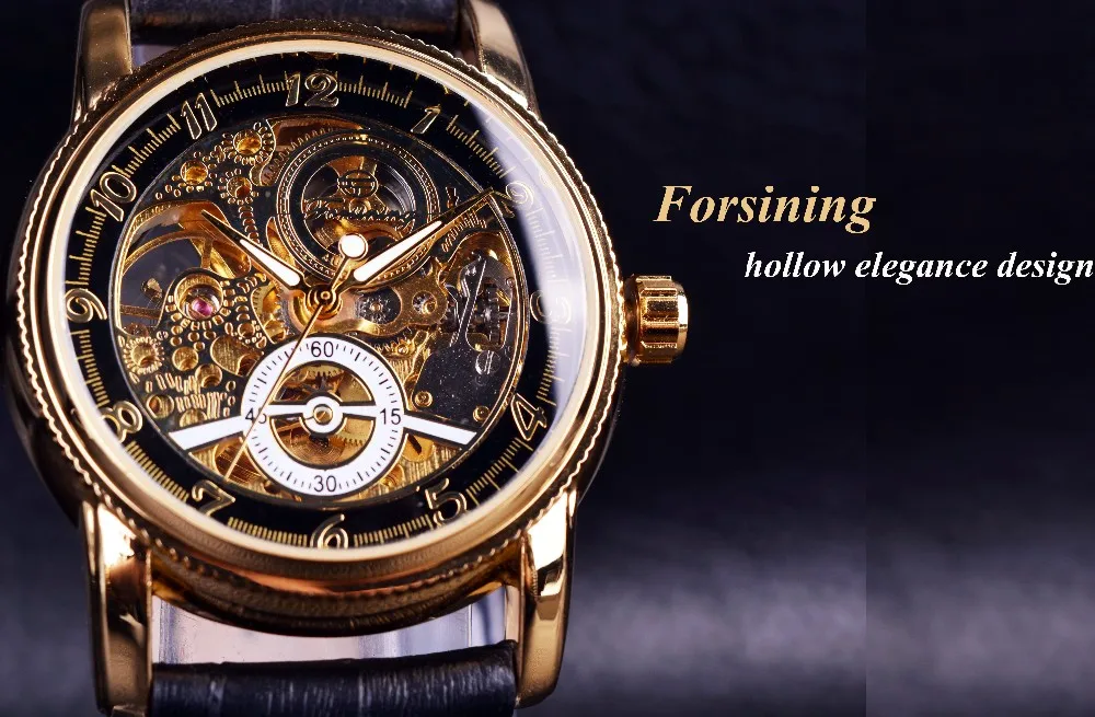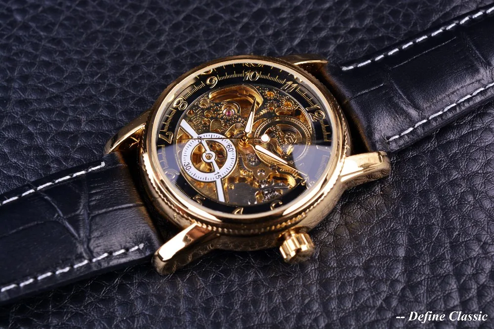 2016 Forsining полые гравировка скелетоны повседневные дизайнерские черные золотистые корпуса шестерни Безель часы мужские роскошные брендовые автоматические часы