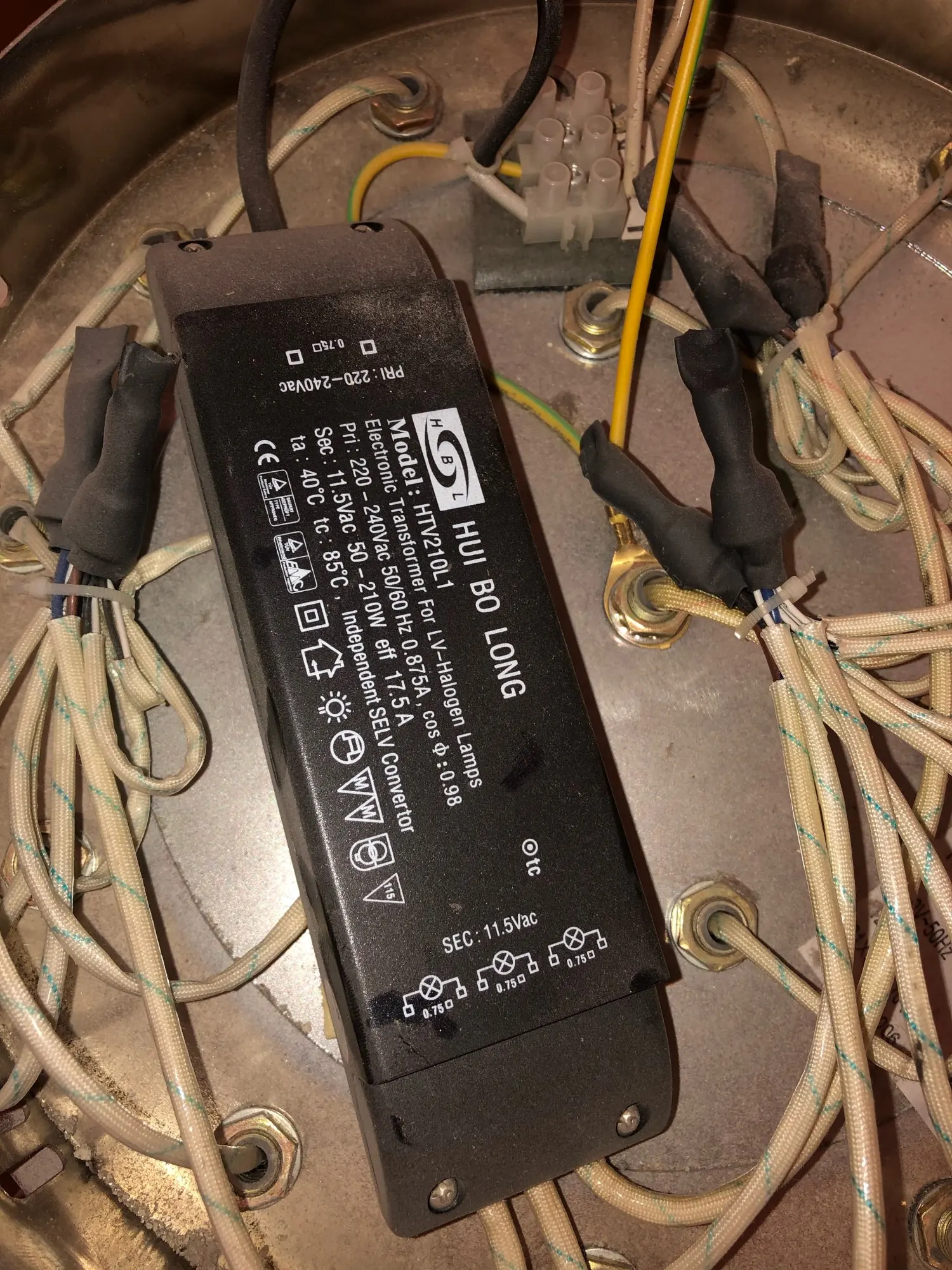 Приехал очень быстро. Всё работает. Люстра ожила. Только сейчас допёр, что убил трансформатор не теми лампочками. Надо было покупать на 20 Вт, а я 30 и 40 покупал. Перегруз был чуть ли ни в два раза. Если трансформатор на 180 Вт стоит в люстре и 9 плафончиков в люстре, значит 180/9=20 Вт на лампочку, не более. Иначе транс не выдержит. А я то думал, чего китайские лампочки так быстро сгорают. Воткнул номинал и вуаля. Не сгорают больше.