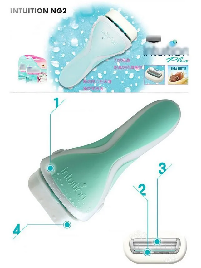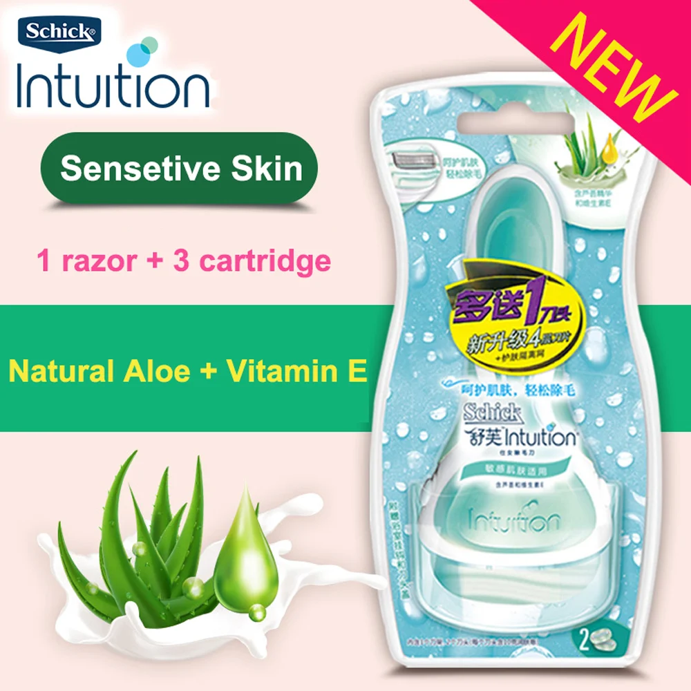 1 Бритва + 3 лезвия, оригинальная интуиция, Женская бритва, безопасная бритва для волос, женское бритье с алоэ, витамином Е, чувствительная кожа, безопасная бритва
