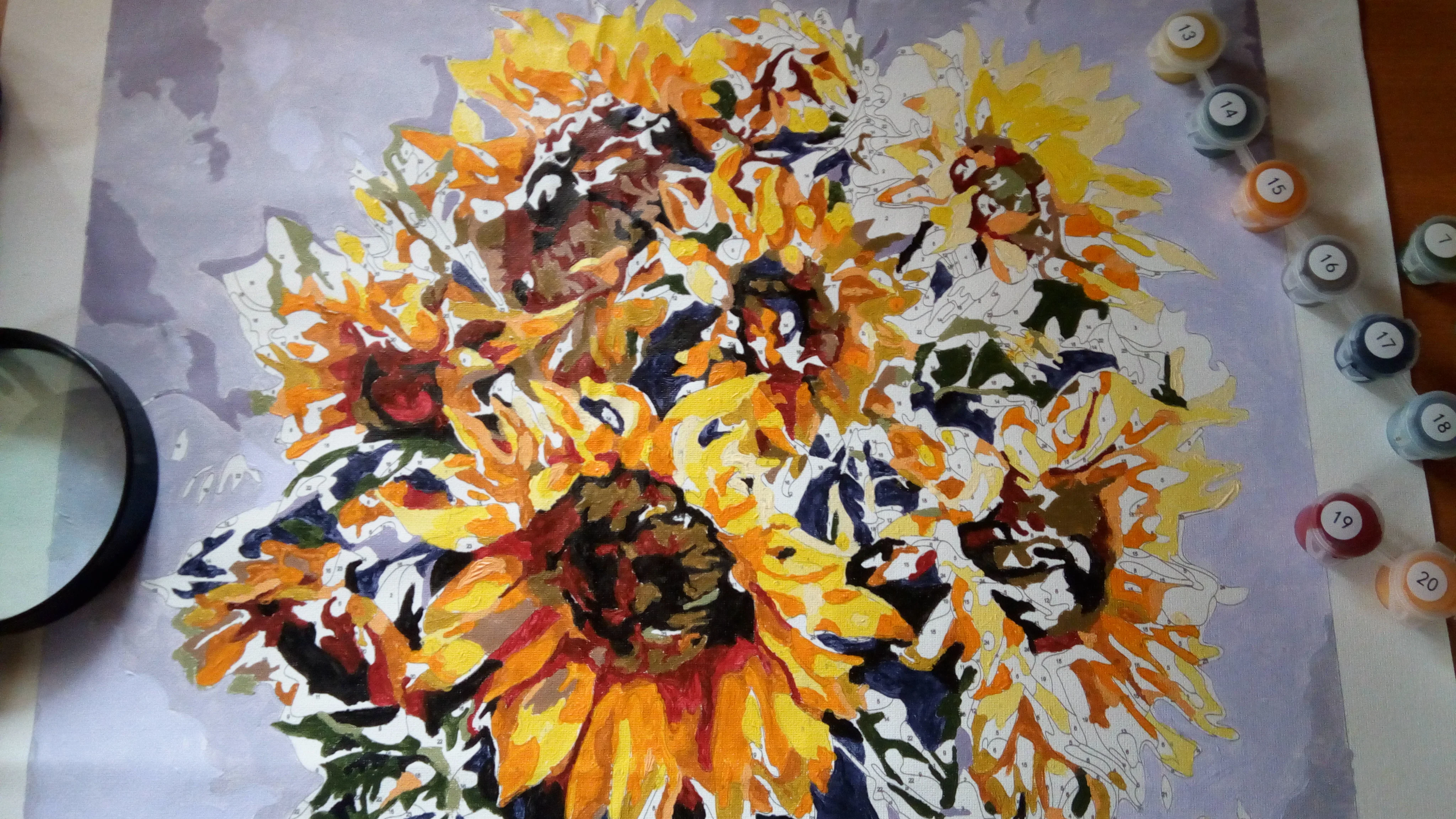Покупаю не первый раз. Комплект . Упакован хорошо. Только почта "сломала" рулон пополам. Большие складки на холсте, но надеюсь холст расправится. Продавец хорошо упаковал, но доставка всё испортила. Всем удачи. Подсолнухи - прелесть.