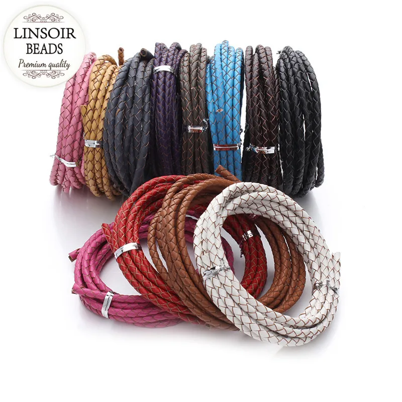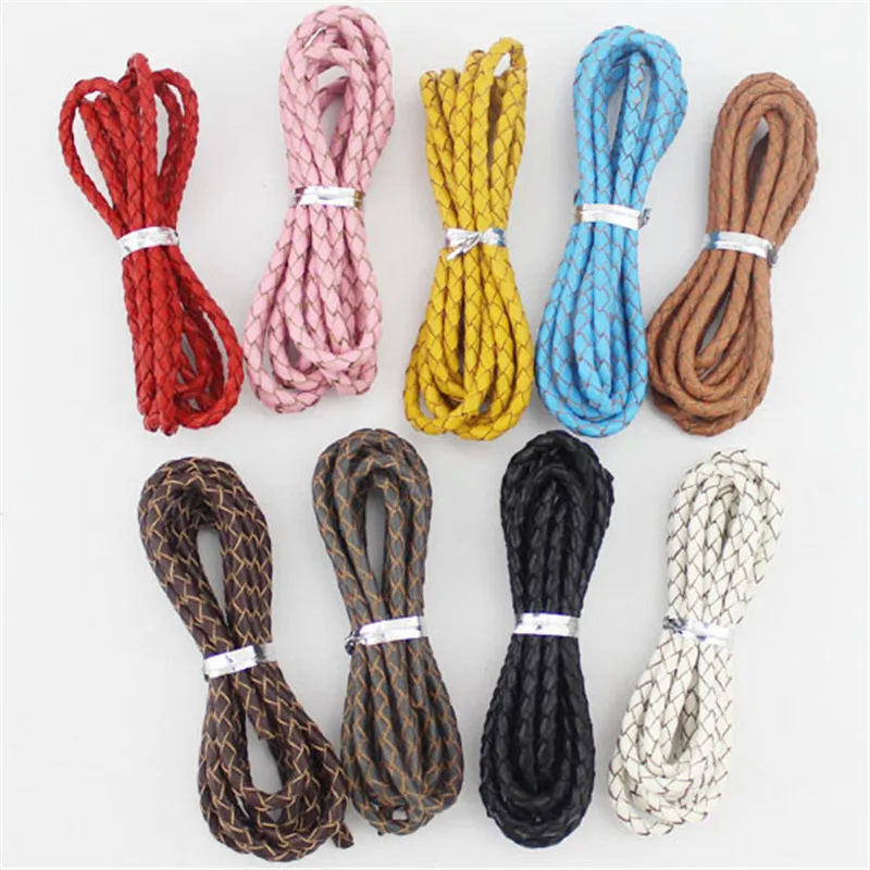 Шнур из натуральной плетеной кожи для украшений сделай сам, 2 млот, диаметр 34 мм, F1104