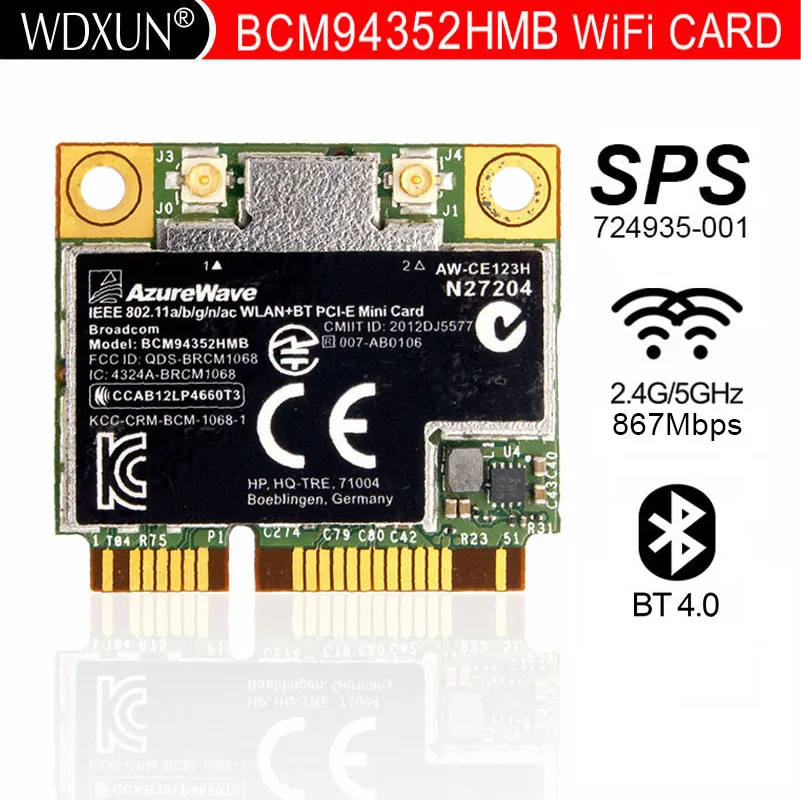 Broadcom BCM94352 BCM94352HMB половинчатая мини PCIe PCI-express беспроводная Wi-Fi WLAN BT Bluetooth карта 802.11AC 867 МГц для 724935-001