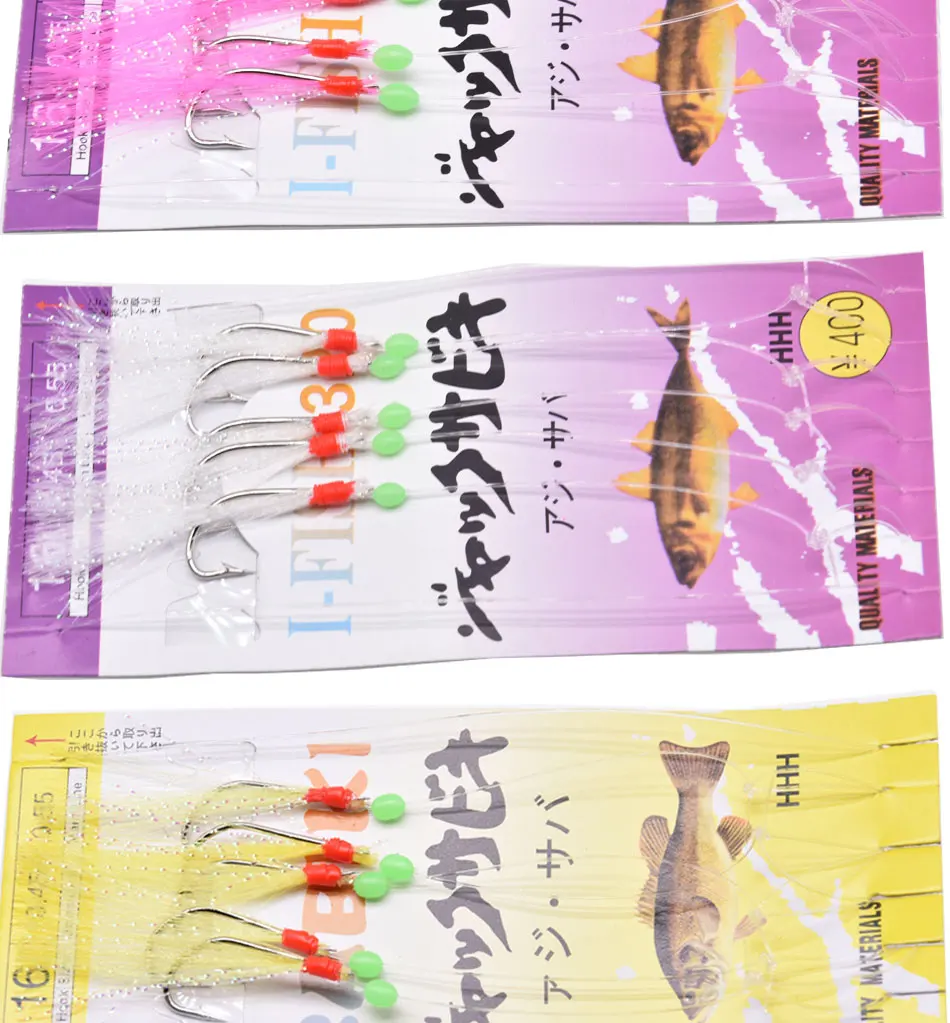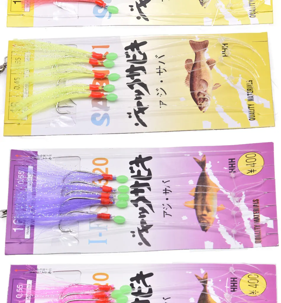 Рыболовные Крючки sabiki, 4 мешка, разноцветные рыболовные крючки, снасти для морской рыбалки, крючки для снаряжения наборов
