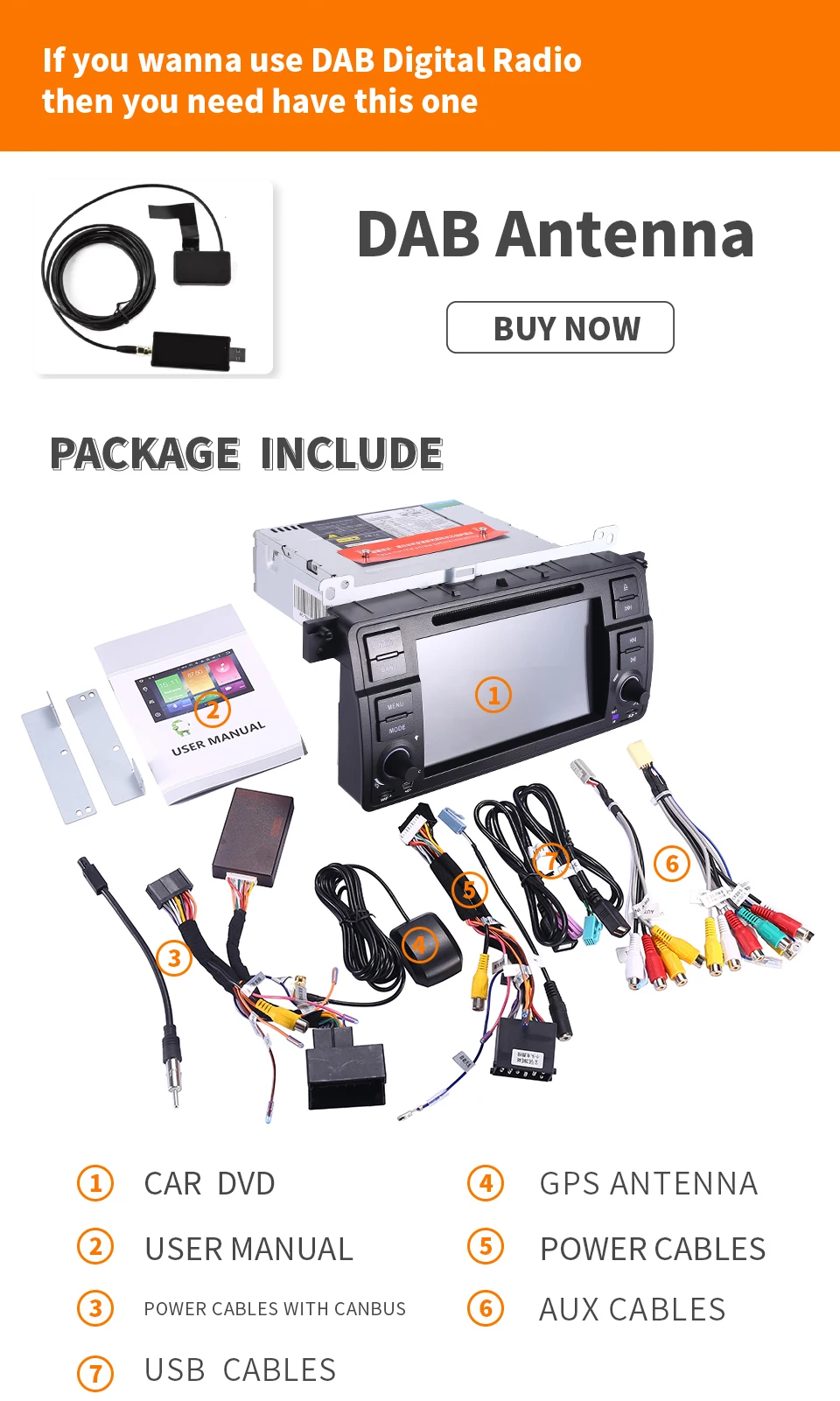 Rimind: наш dvd E46 имеет 17 pin и 40 pin короткий кабель в комплекте. Кабели, которые Мы помещаем в посылка, подходят для автомобиля, который имеет оригинальный CD только в том случае, в том случае, если ваш автомобиль имеет 4,3 дюймов или 7 дюймов Оригинальный navi экран. Он должен совпадать с нашим 6 М длинные Удлинительный кабель в комплекте. Пожалуйста, обратите внимание, что наш автомобильный dvd не поддерживает усилитель DSP