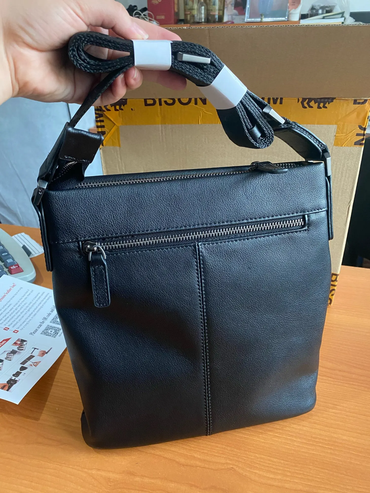 BISON DENIM брендовая мужская сумка через плечо из натуральной кожи 10,5 "Ipad черная воловья сумка через плечо для мужчин повседневные сумки-мессенджеры N2357-1
