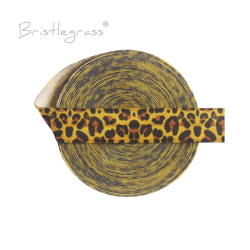 Блестящая трава 5 ярдов 5/8 "15 мм Желтый леопардовый принт складывается поверх резинок FOE спандекс атласная лента повязка на голову галстук для волос платье-пачка Шитье