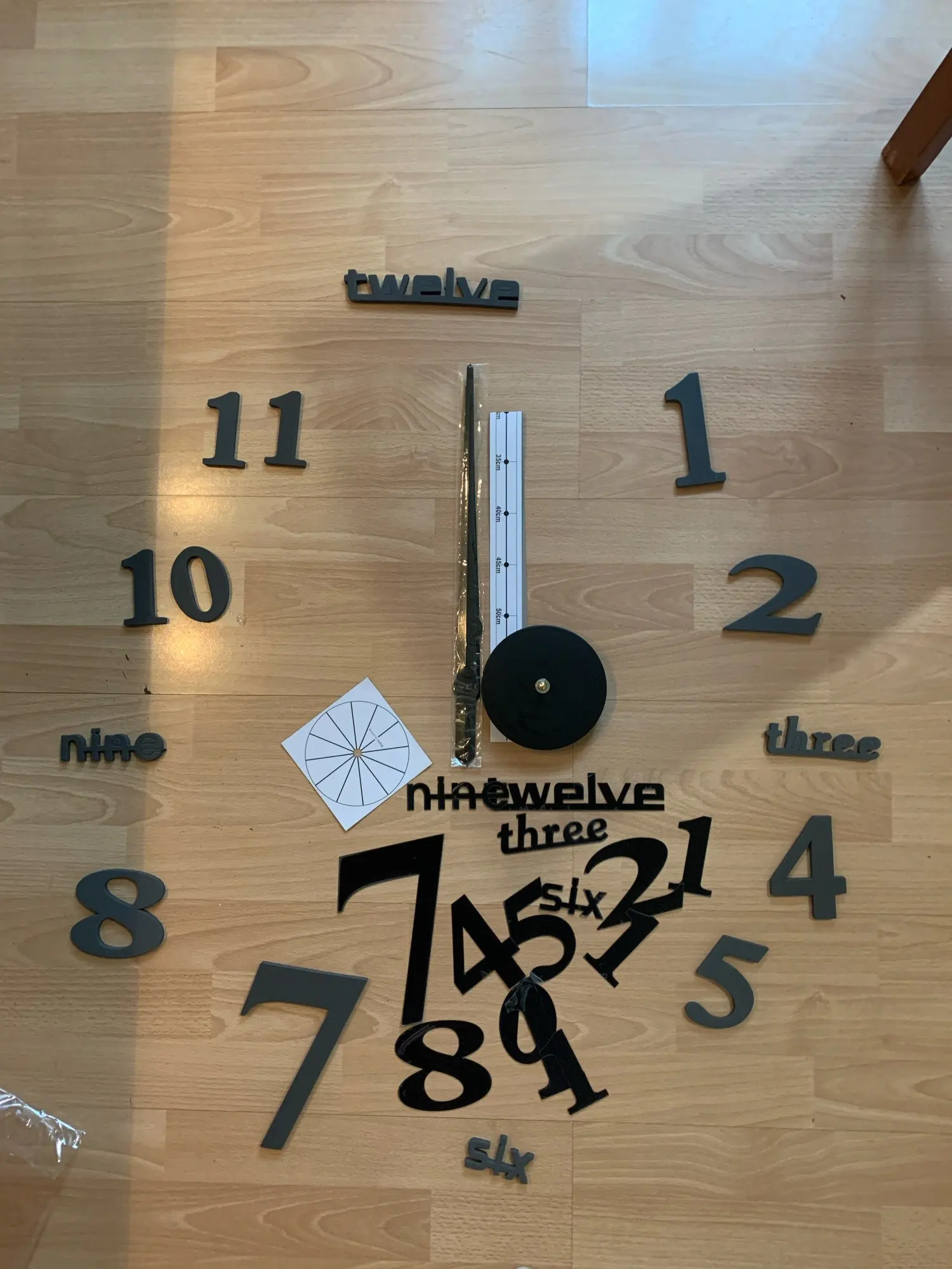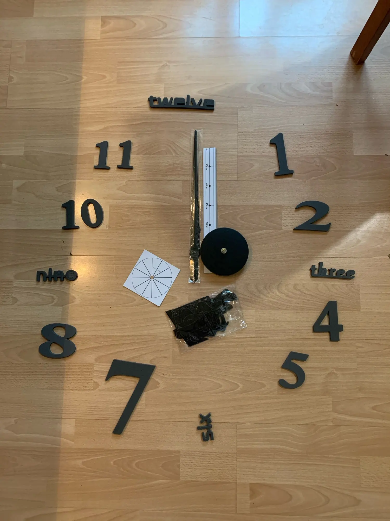 Пришли чуть меньше, чем за месяц. Долгая доставка из-за большой нагрузки в чёрную пятницу. Часы упакованы были надежно, в пенопластовую коробку. В комплекте есть все, для удобной разметки и монтажа на стену. Сами цифры в защитной пленке. После установки выглядет прям здорово, гораздо дороже своих денег. Всем советую продавца и данный товар.