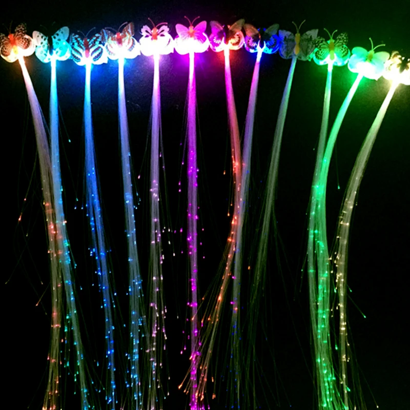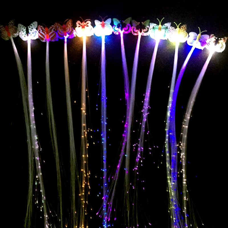 50 шт./лот светодиодная вспышка оплетка шоу вечерние украшения бабочки светящиеся пряди волоконно-оптический провод шпилька свечение мигает зажим для волос