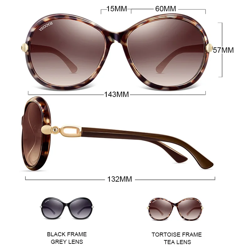 Женские солнцезащитные очки VEGOOS, дизайнерские поляризационные солнцезащитные очки в стиле ретро с защитой от ультрафиолета 100%, большие, для женщин, для маленьких лиц #9021