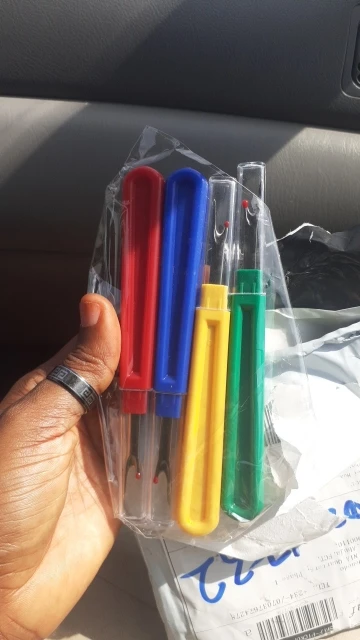 До Тамбова доставка 14 дней,получала на кассе магазина "Пятерочка",хорошие,острые,лезвие толстое,не сломаются,не гнутся,с колпачками,описание все соответствует,упаковано в пакетик и пупырку,ничего не сломанно,рекомендую.