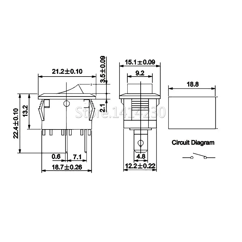 Кнопочный переключатель 15x21 мм SPST 2Pin 6A 250V 10A 125V KCD1-101 кнопочный переключатель вклвыкл 15 мм * 21 мм черный 10 шт.
