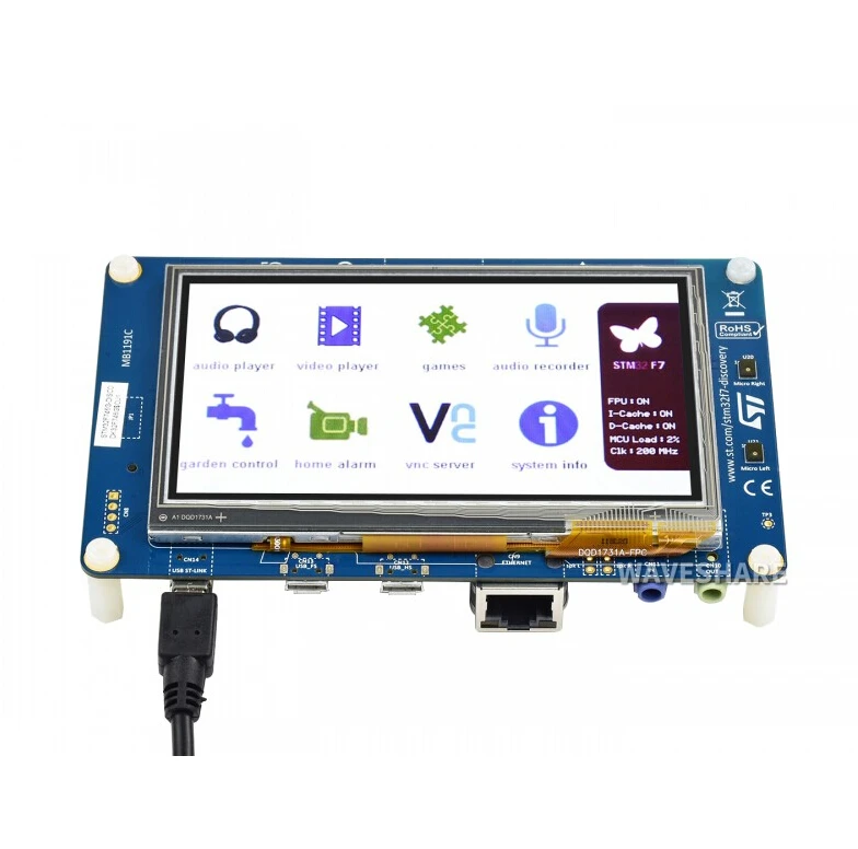 ● Набор обнаружения STM32F7 позволяет пользователям разрабатывать и делиться приложениями с микроконтакторами серии STM32F7 на основе руки®Кортекс®-M7 core.
