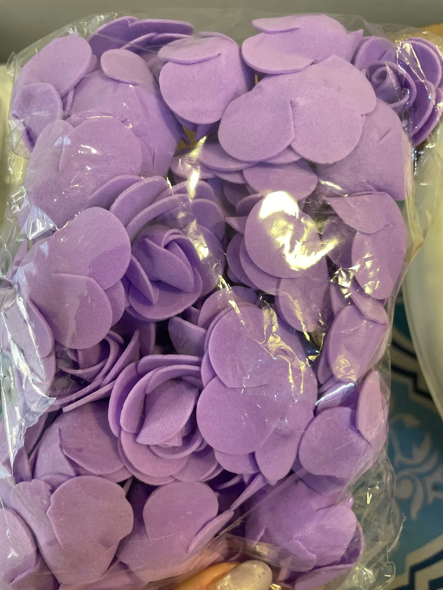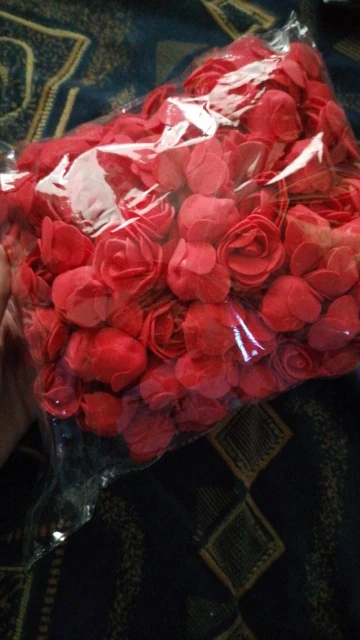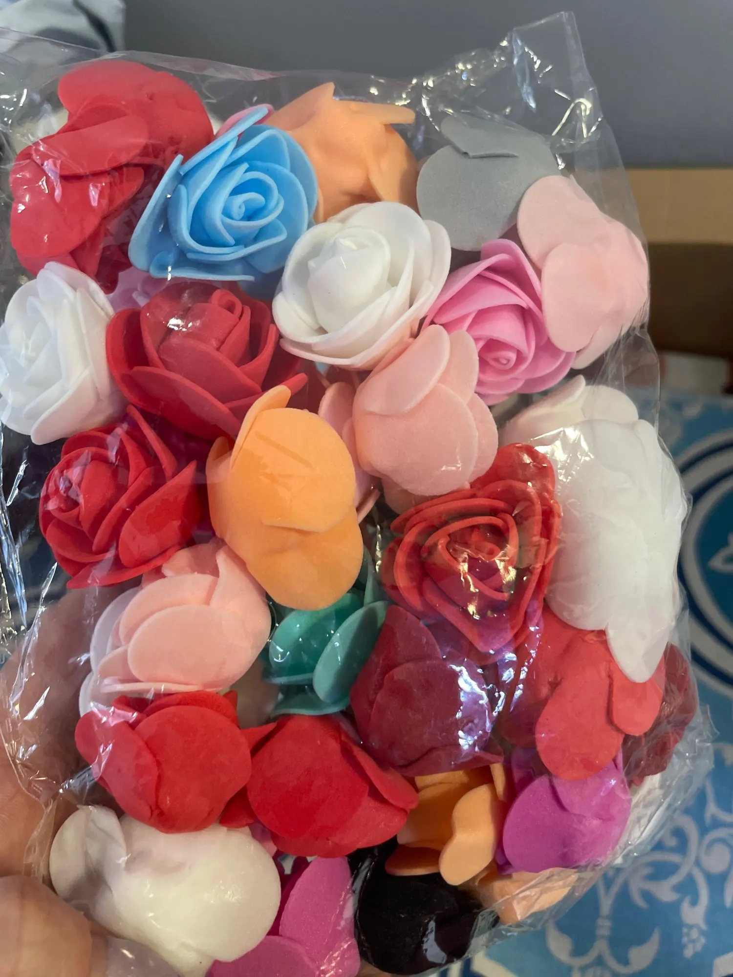 забрала из dpd сегодня цветочки. Красивые, несколько немного раскрыты, но это поправимо. цветы из фоамирана, размер небольшой 2-3 см. самые маленькие бордовые, красные, мятные. Цветков было больше, чем 50 шт. в моем пакете оказалось много зелёных. доставка в Киров составила 3 недели, объединили с другой посылкой. довольна.