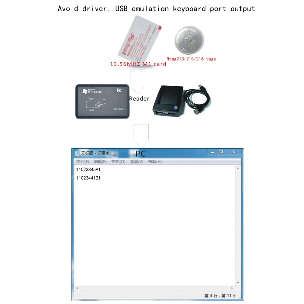 1) подключи и играй, стандартный режим интерфейса USB клавиатуры компьютера, нет необходимости загружать любой драйвер, компьютерная система автоматически будет его как устройство ввода обучения человека. 2) с помощью интерфейса USB компьютера обеспечивает стабильное питание, отсутствие внешнего источника питания и встроенную защиту питания.Поддержка: NFC 13,56 МГц ISO14443 F08 S50 S70 Частота: 13,56 МГцЧтение: первые 10 цифровых карт RFID IC Поддержка Windows95/98/2000/XP/7/8/10/androidСкорость связи: 106 кбит/сМощность: 5 В постоянного тока (+/-5%)Расстояние чтения: 5-8 смИнтерфейс: USB