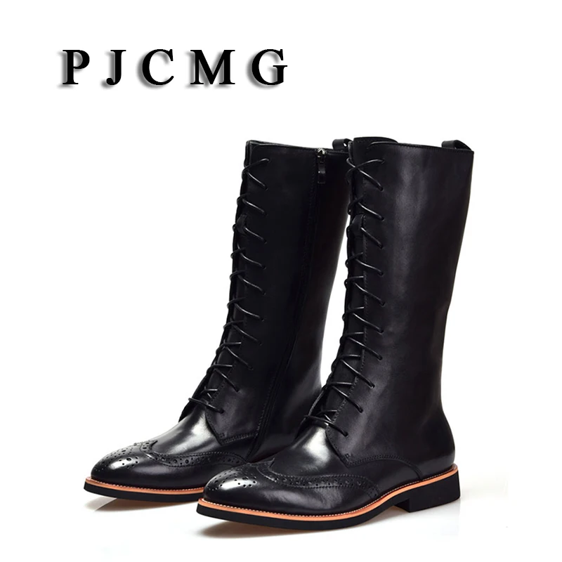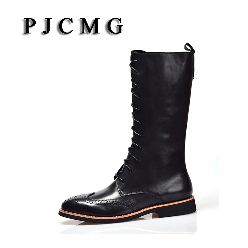 Мужские мотоциклетные ботинки PJCMG, брендовые водонепроницаемые ботинки на молнии из натуральной кожи с застежкой, официальная обувь