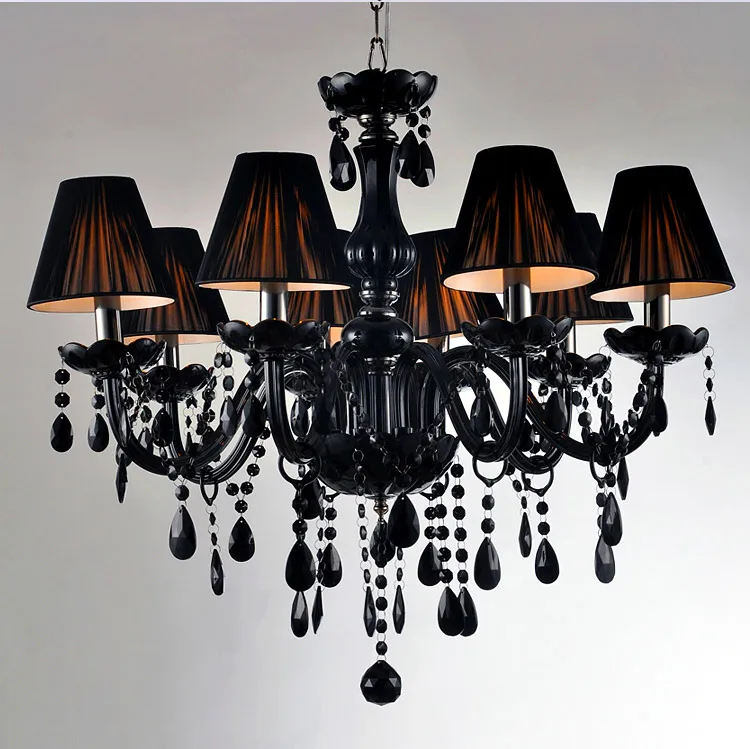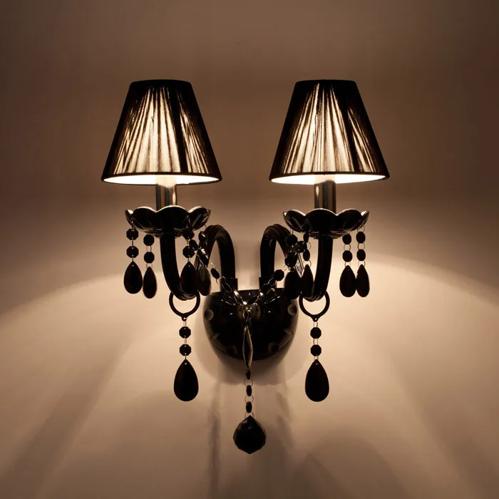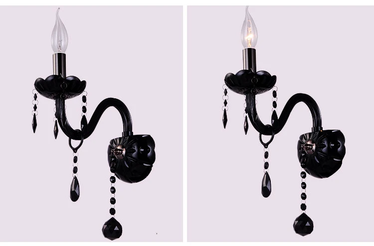 Прямая продажа с фабрики черный кристалл настенный светильник Свеча Led E14 лампы черный сбез ткани абажур 12 головы