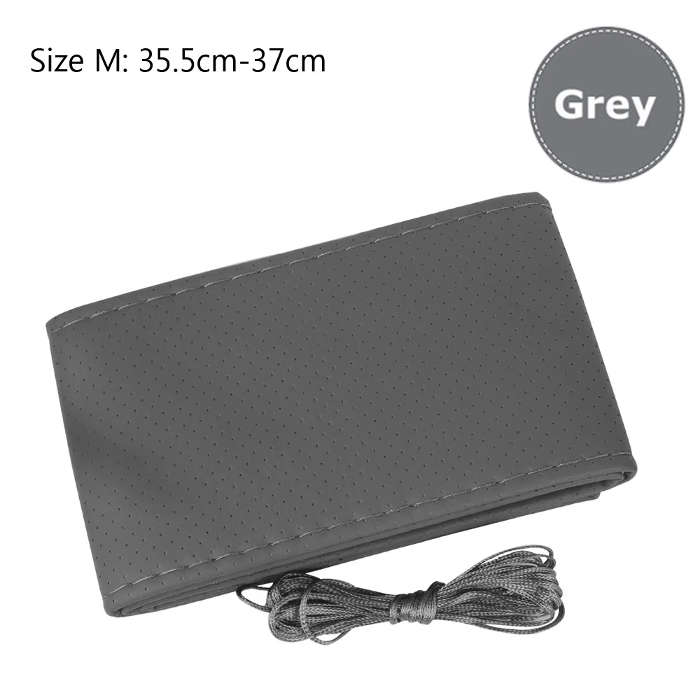 LEEPEE, 1 шт., сделай сам, чехол рулевого колеса автомобиля, с иглами и нитью, искусственная кожа, серыйчерный, # HA10328